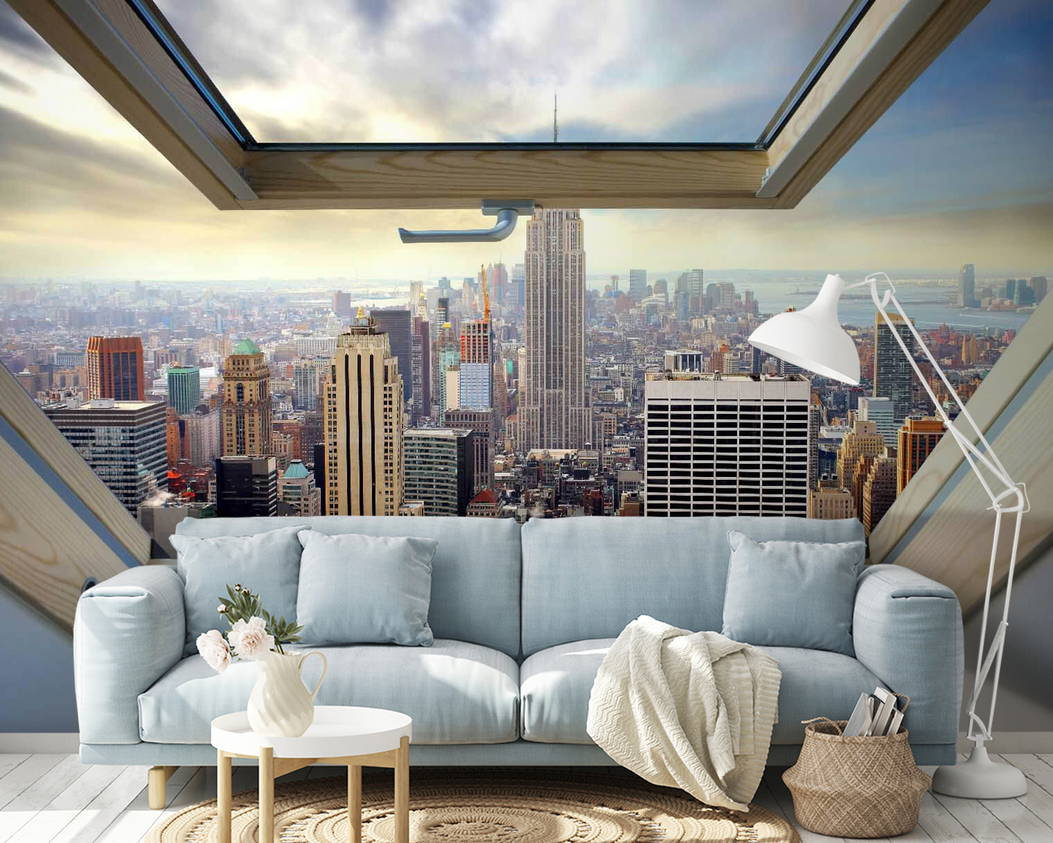 Představte si toto: slunečné ráno, jemný vánek proudící otevřeným oknem a panoramatický výhled na rušné město – to vše z pohodlí vašeho domova. To vše slibuje tato tapeta „Wall Murals Window with a View of a City“ (Tapety s výhledem na město). Dodává hloubku a energii každé místnosti a proměňuje jednoduchou zeď v živou scénu mrakodrapů sahajících až k oblakům.