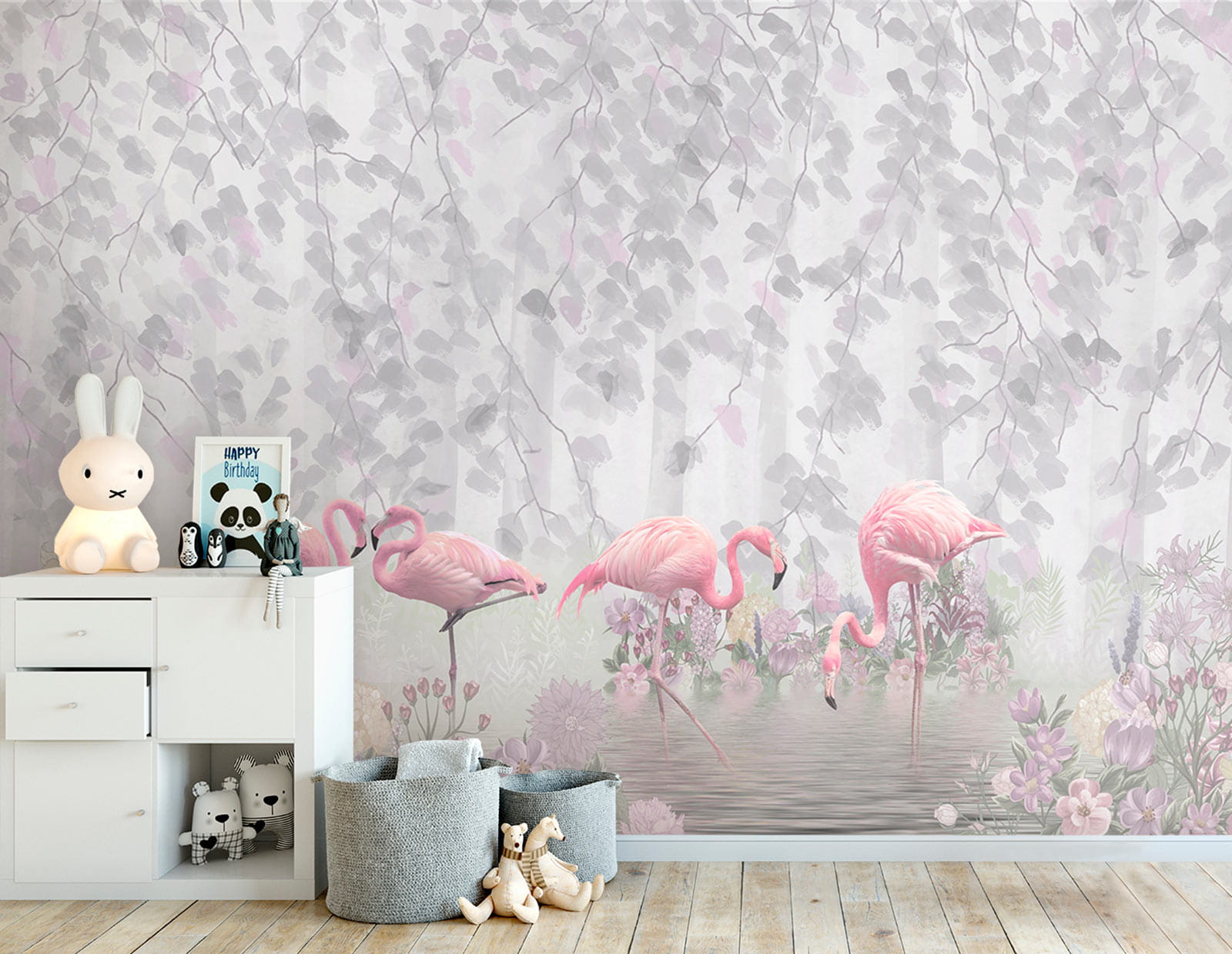 Transform any space with this gorgeous wall mural featuring a group of pink flamingos gracefully hanging out by a serene pond, surrounded by delicate flowers. Imagine the warmth it brings—like a gentle embrace on a sunny day. It’s like taking a little vacation every time you walk into the room. The dreamy pink tones and soft floral vibes create a peaceful atmosphere, making it perfect for a cozy living room or a calming bedroom retreat. Plus, it’s a sure conversation starter! Who wouldn’t want to chat about these fabulous feathered friends? Add this mural, and let your walls tell a vibrant story that makes everyone feel at home.