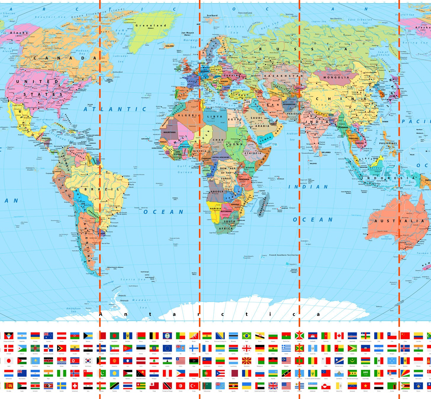 Fototapeta Mapa světa s různými vlajkami