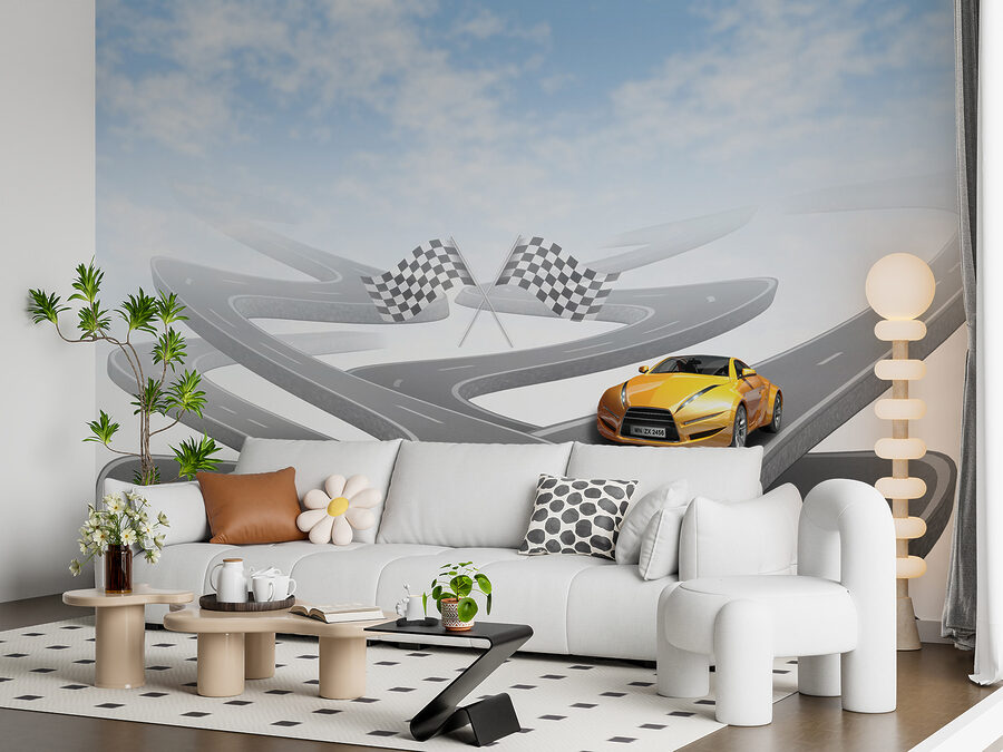 Snili jste někdy o tom, že se budete prohánět po klikatých silnicích v nablýskaném sportovním autě? Tato nástěnná malba vám to splní! Zářivě žlutý sportovní vůz na zdánlivě nekonečné klikaté silnici pod tak modrou oblohou, že vaše zdi možná ožijí. Ideální pro automobilové nadšence, děti, které sní o závodních dobrodružstvích, nebo kohokoli, kdo má rád ve svém interiéru špetku vzrušení. Představte si příběhy, které byste mohli vyprávět, například o závodění v horách nebo o plavbě po pobřežních dálnicích s větrem ve vlasech. Je to jako mini útěk, přímo na vaší zdi!