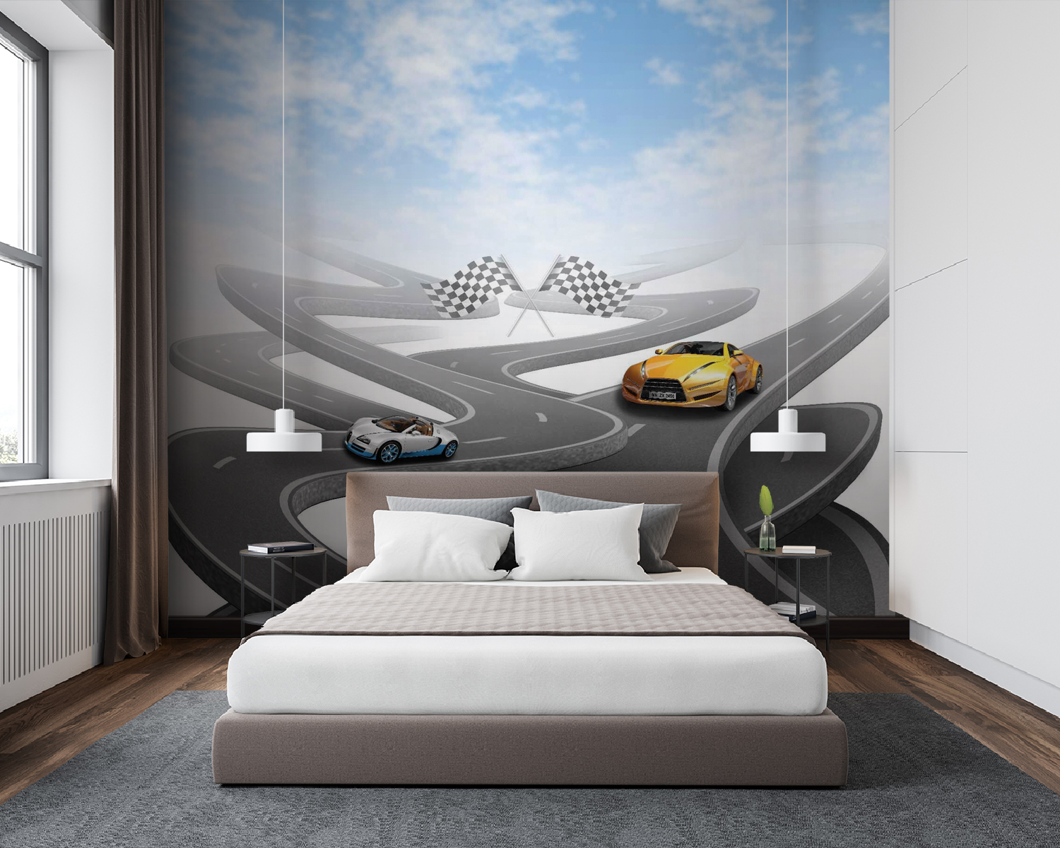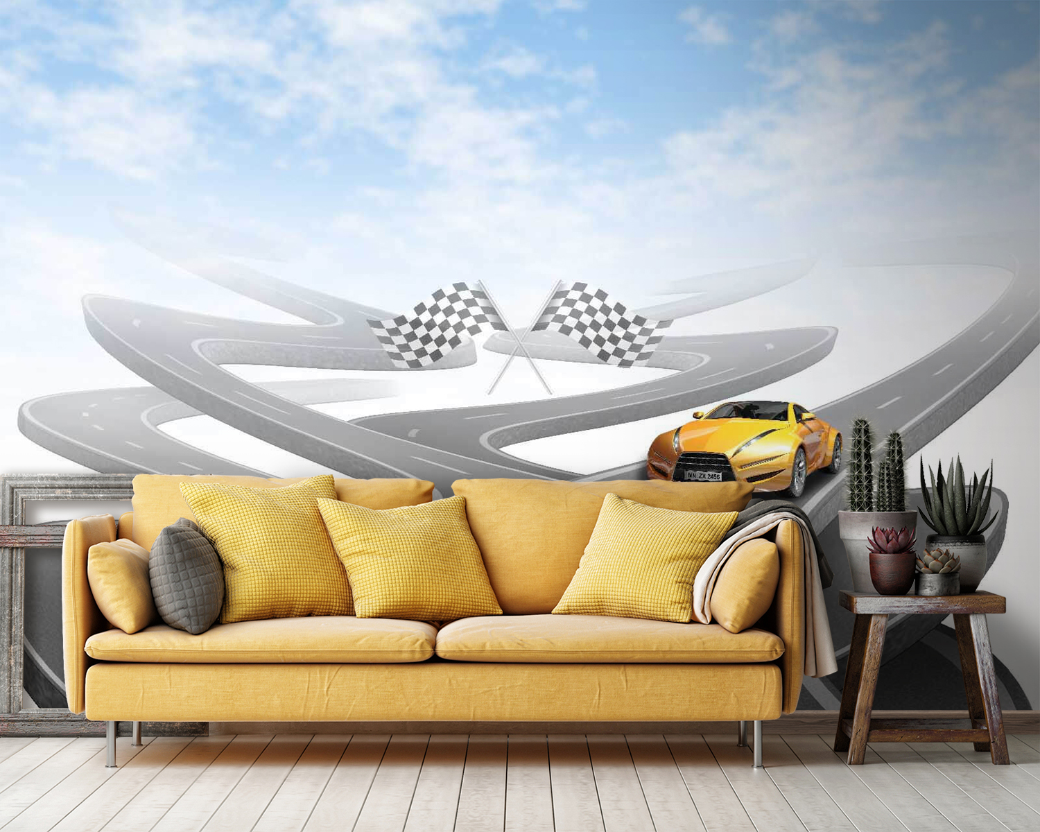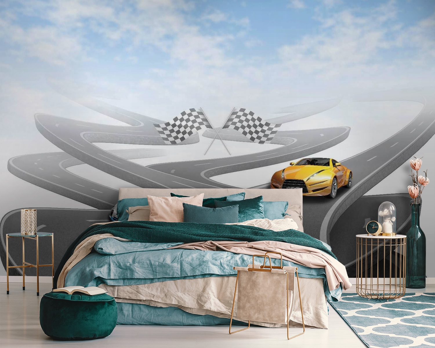Snili jste někdy o tom, že se budete prohánět po klikatých silnicích v nablýskaném sportovním autě? Tato nástěnná malba vám to splní! Zářivě žlutý sportovní vůz na zdánlivě nekonečné klikaté silnici pod tak modrou oblohou, že vaše zdi možná ožijí. Ideální pro automobilové nadšence, děti, které sní o závodních dobrodružstvích, nebo kohokoli, kdo má rád ve svém interiéru špetku vzrušení. Představte si příběhy, které byste mohli vyprávět, například o závodění v horách nebo o plavbě po pobřežních dálnicích s větrem ve vlasech. Je to jako mini útěk, přímo na vaší zdi!