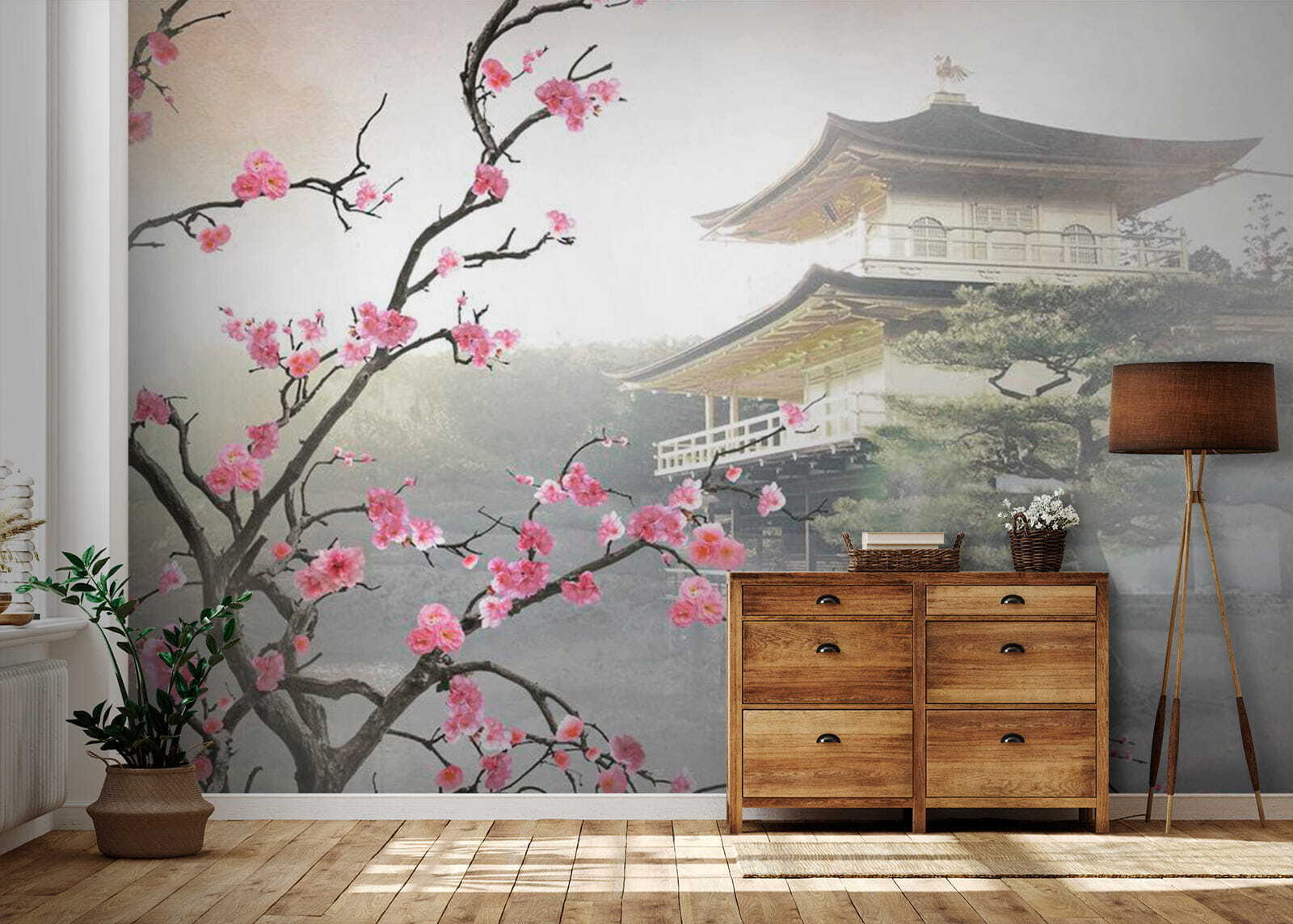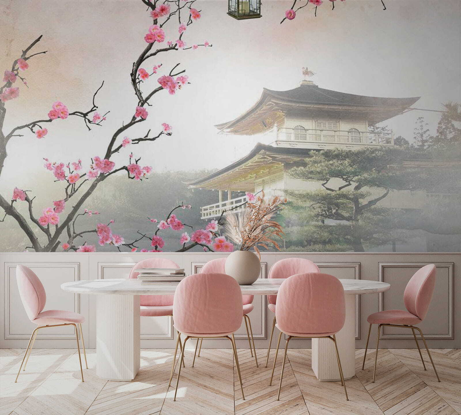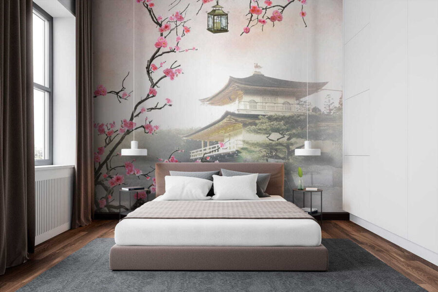 Představte si to: máte za sebou dlouhý den, svalíte se na gauč a najednou je tu tato úžasná nástěnná malba: “Květy rámující klidný japonský chrám.” Budete mít pocit, že jste utekli do klidné zahrady na druhém konci světa. Křehké třešňové květy se snášejí dolů a rámují tichý chrám, ze kterého přímo čiší klid. A ty jemné barvy? Čisté kouzlo. Ideální pro každého, kdo miluje japonskou kulturu nebo jen chce do svého prostoru přidat špetku zenu.