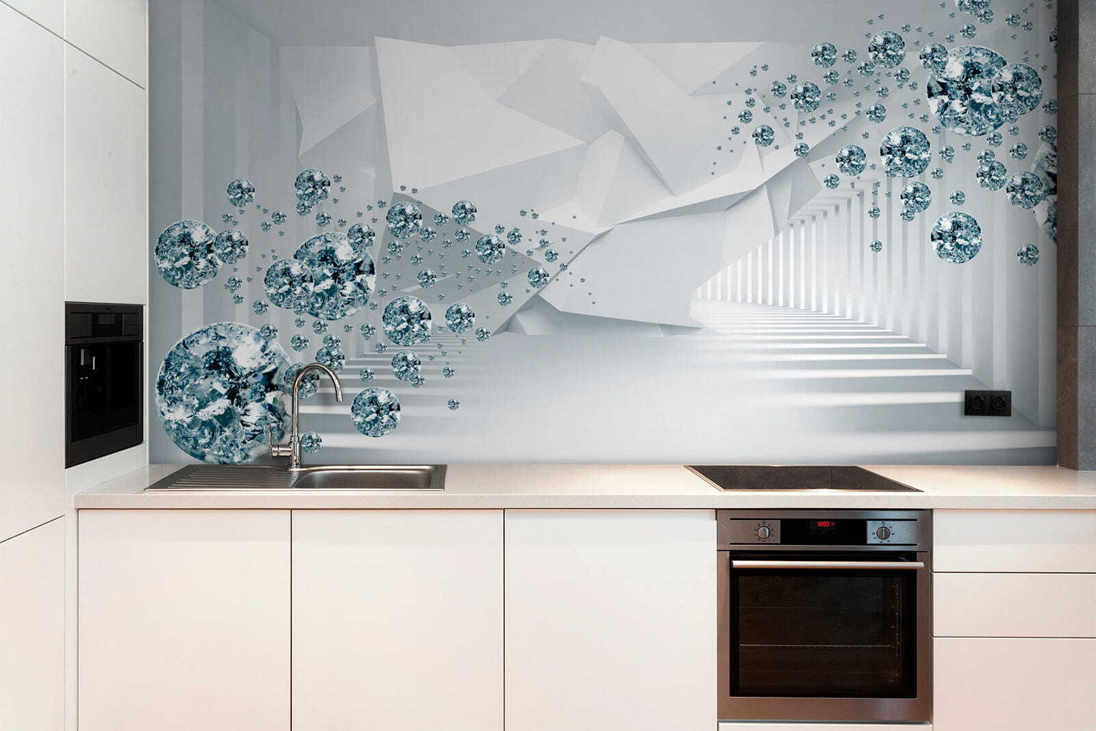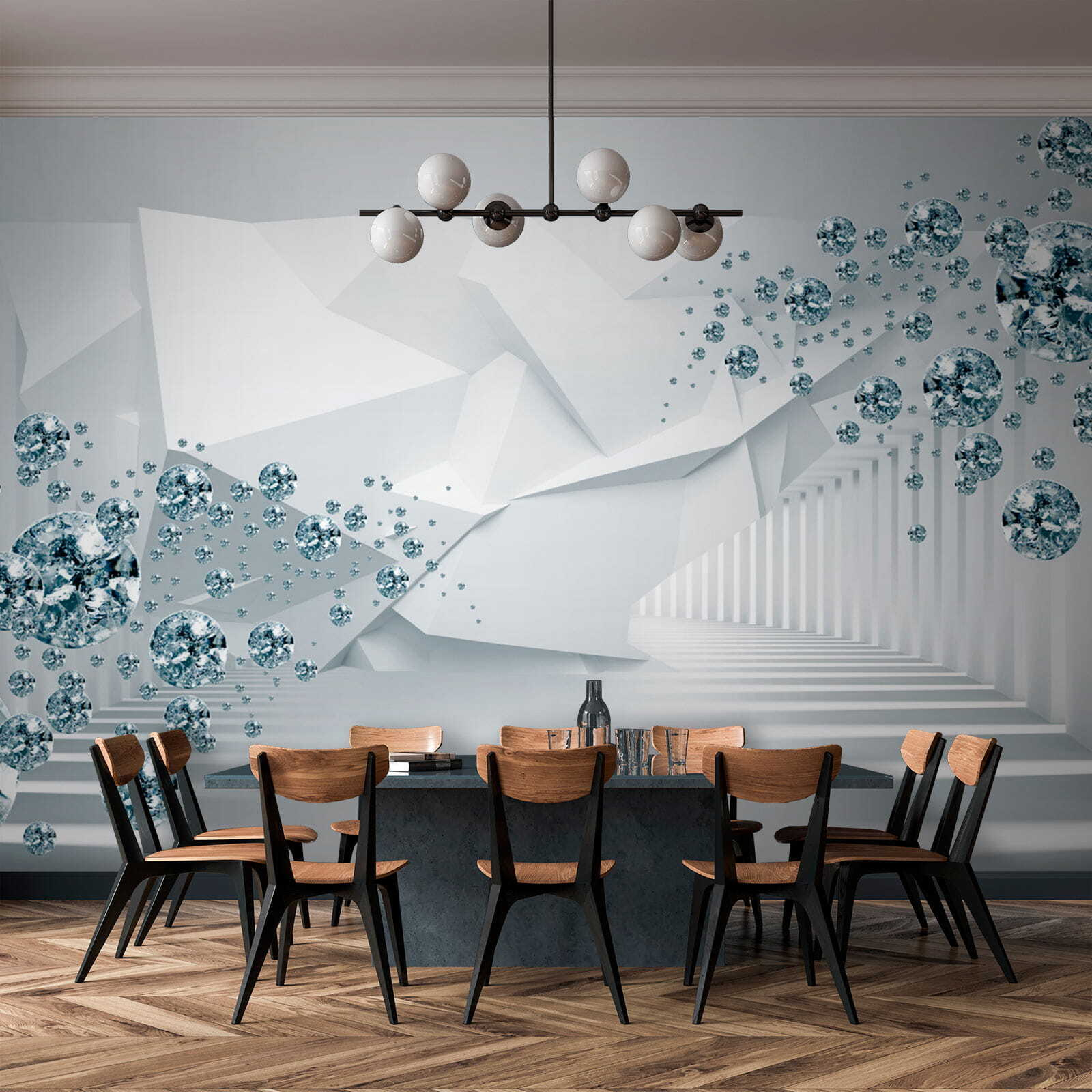 Vstupte do honosného snu s touto podmanivou nástěnnou malbou “Plovoucí drahokamy ve futuristické chodbě”. Představte si světlé prostory plné těchto okouzlujících plovoucích tvarů, které vytvářejí pocit zázraku. Ideální pro každého, kdo chce oživit nudnou stěnu nebo dodat šmrnc útulnému zákoutí. Na tom, jak si hraje se světlem a stínem, je něco téměř rozmarného, co do všedního dne vnáší nádech magie. Představte si živé setkání, kde se hosté nemohou ubránit pohledu na toto umělecké dílo, které vyvolává konverzaci a vzbuzuje úctu. Komu by se to nelíbilo? Proměňte jakoukoli místnost v ohromující únik a sledujte, jak vdechuje trochu života do každého okamžiku!