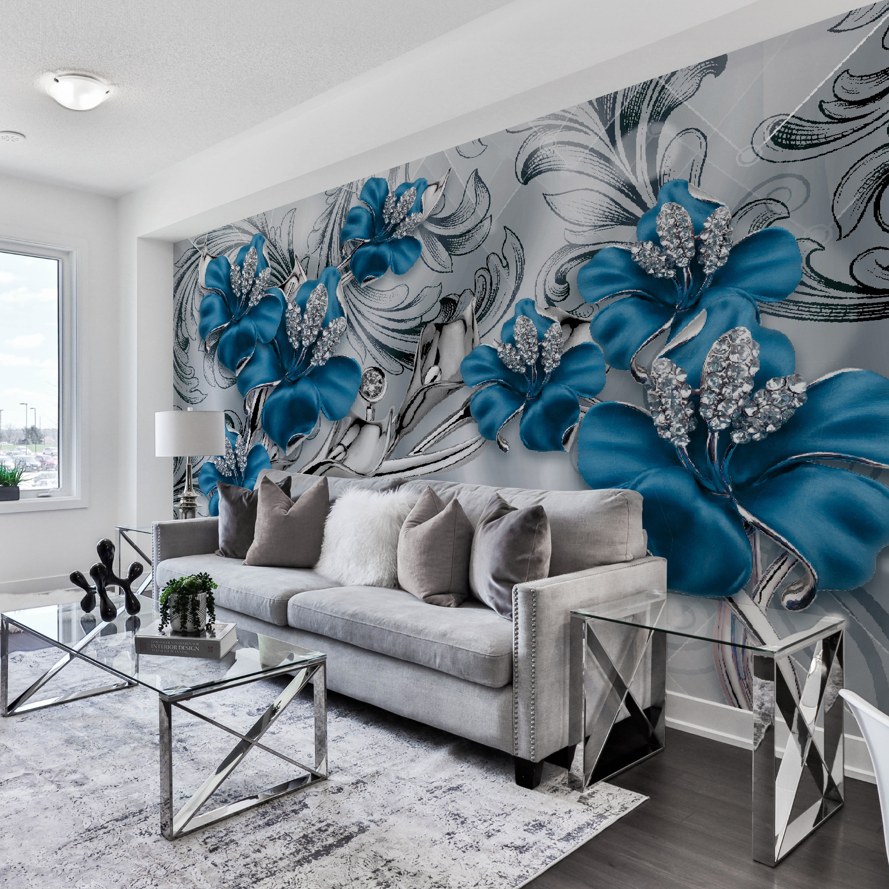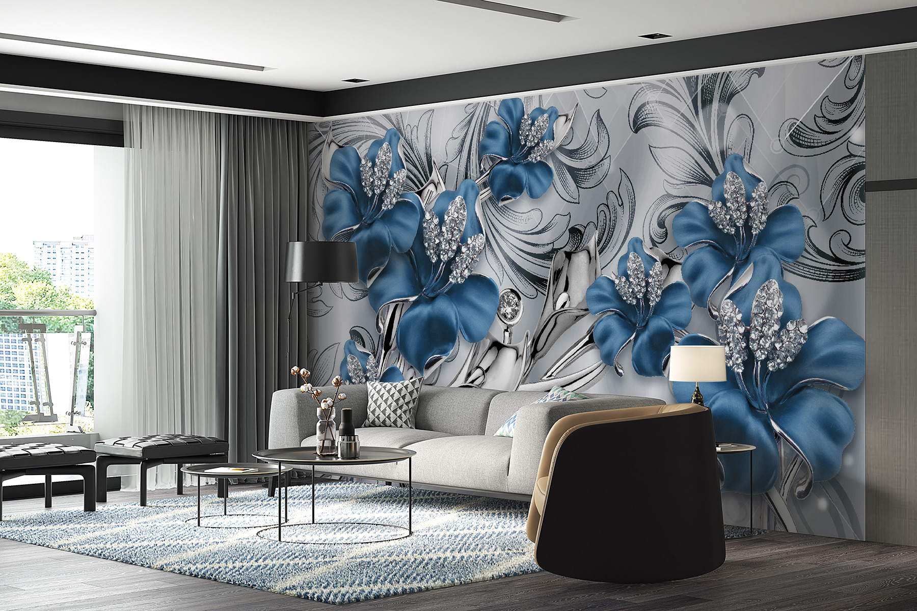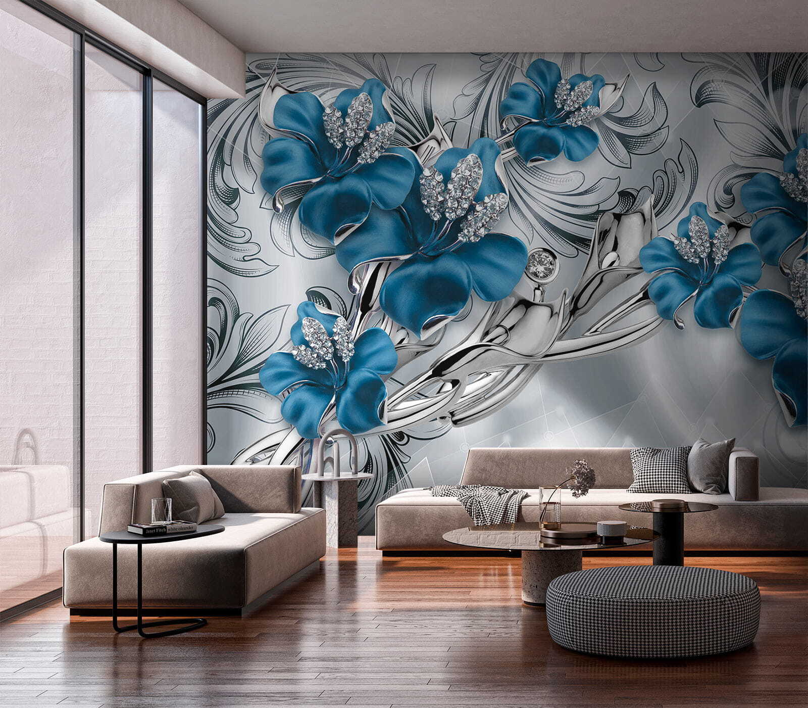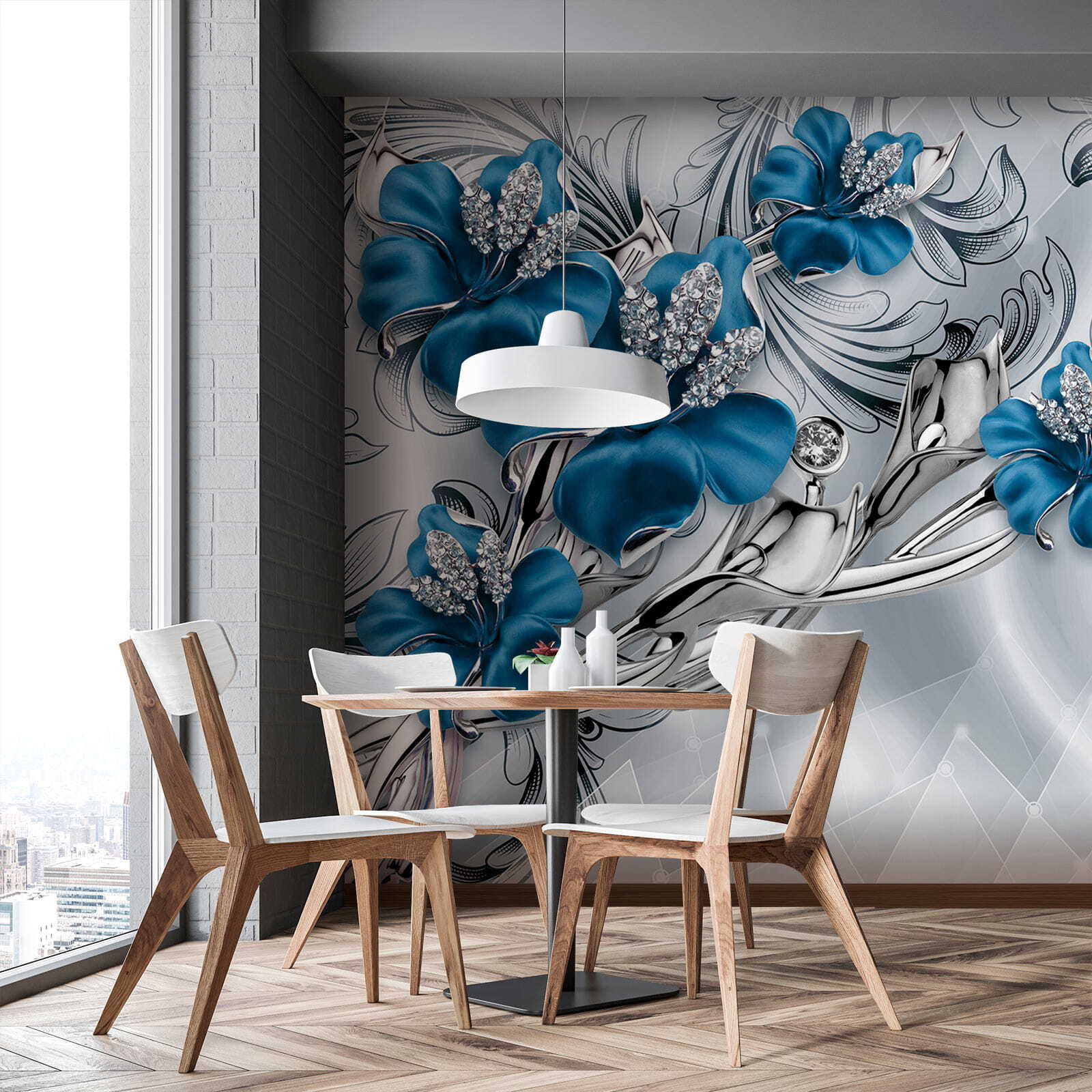 2 recenze Fototapeta Zdobené modré květy s krystaly