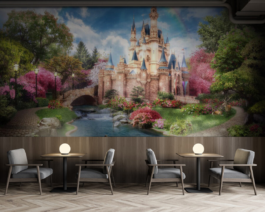 Představte si, že jste vstoupili do pohádky s nástěnnou malbou “Zámek s duhou na obloze”. Představte si okouzlující zámek uprostřed rozkvetlých stromů, klidného rybníka a ano, zářící duhy táhnoucí se po obloze – dodá každé místnosti kouzelnou atmosféru. Tato fototapeta, která se skvěle hodí do dceřina pokoje nebo do jakéhokoli dětského útočiště, promění stěny ve snový únik, kde se fantazie může vyřádit. Kdo by potřeboval pohádky před spaním, když dobrodružství je přímo na stěně? Klidná zahradní cesta, labutě klouzající po vodě a hrad vyzařující kouzlo – to je jako vlastní okno do světa fantazie. Jen si představte, jak ti nejmenší usínají a sní o kouzelných zemích a epických výpravách.