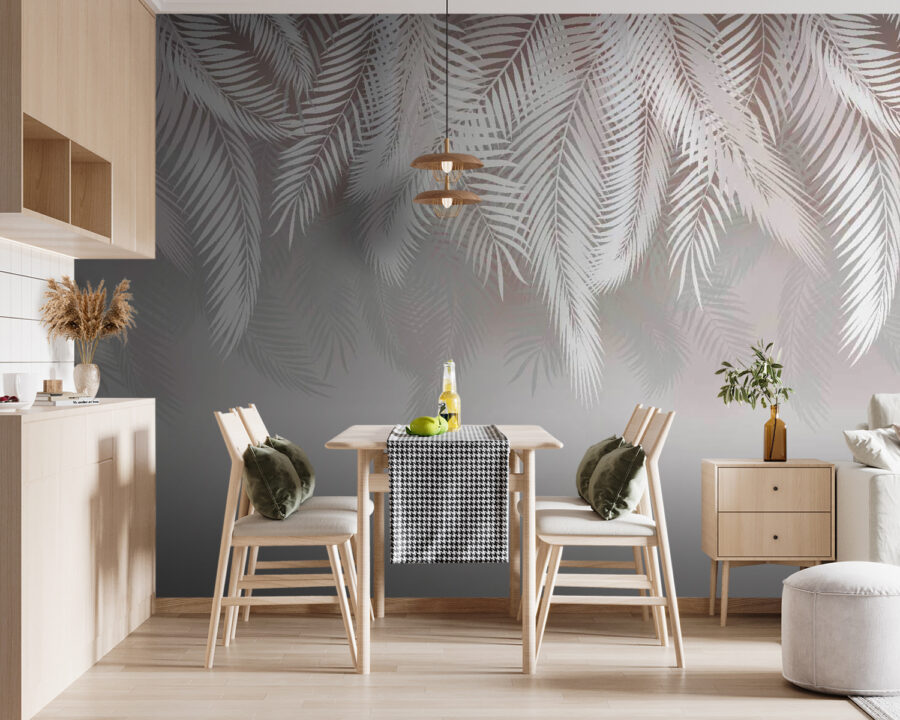 Chcete si vylepšit pokoj bez velkého rozruchu? Podívejte se na tyto bílé palmové listy na béžovém pozadí – jako byste si přinesli dotek tropů přímo k vám domů! Tato nástěnná malba působí velmi uklidňujícím dojmem, jako jemné šumění palmových listů v mírném vánku. Představte si, že se po dlouhém dni vracíte domů; s touto fototapetou na zdi byste téměř očekávali, že v pozadí uslyšíte šumění oceánu.
