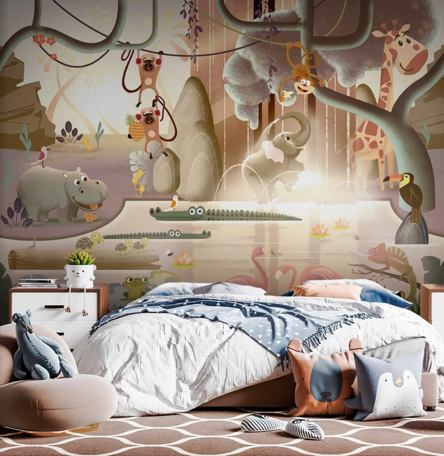 Představte si to na zdi svého dítěte: rozmarná scéna jako z pohádkové knihy! Na této fototapetě je drzá žába sedící na talíři, která se prolíná s hravým pozadím džungle. Sloni, opice a plameňáci – ti všichni jsou zde, aby zaujali představivost těch nejmenších. Je to jako mini dobrodružství přímo v pokoji, které vytváří zábavné místo pro vyprávění příběhů nebo jen snění!