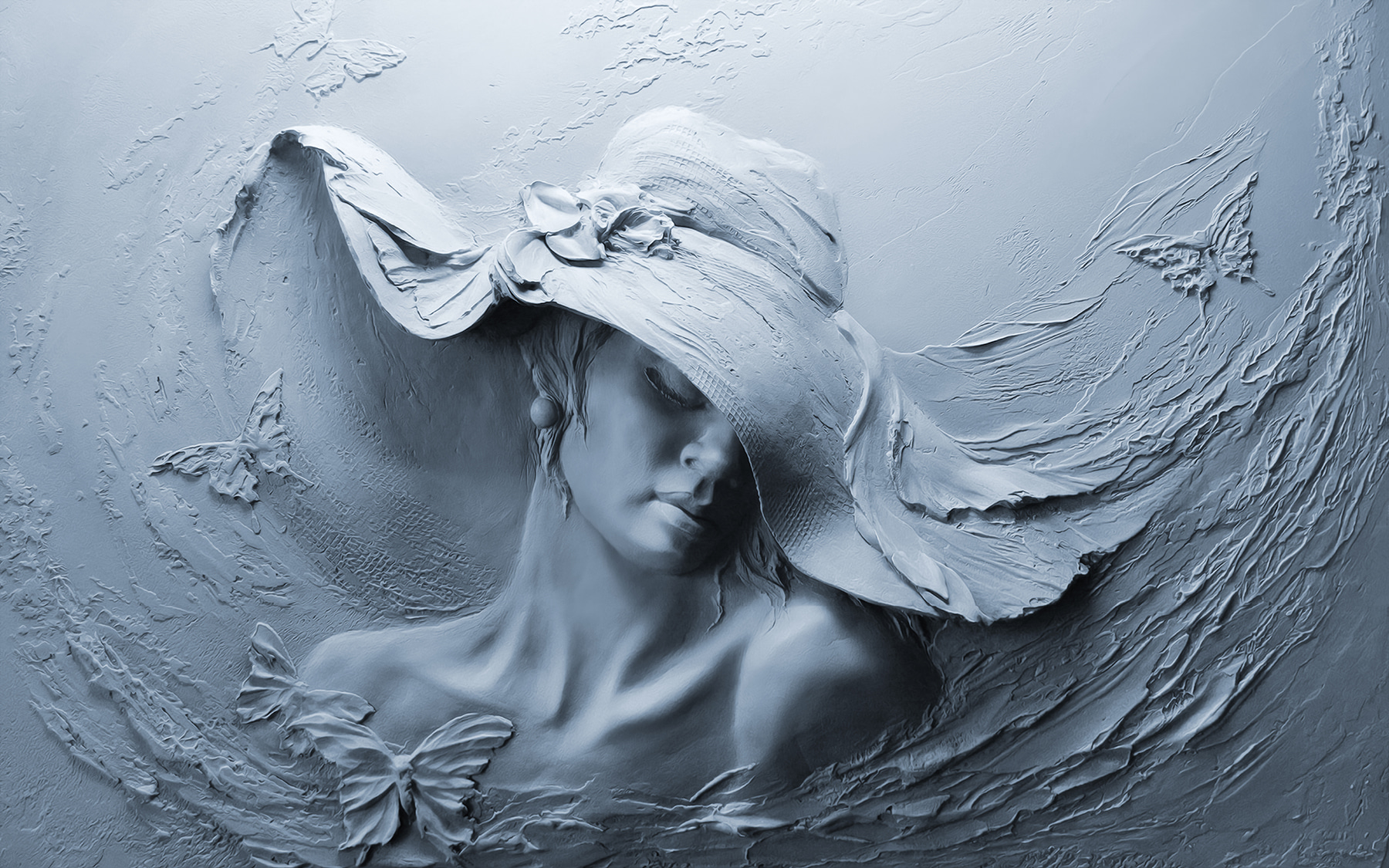 Proměňte svůj prostor pomocí této úchvatné nástěnné malby s klidnou sochou ženy v klobouku. Je to jako vnést do místnosti jemný vánek – okamžitě povznášející. Představte si, že se pohodlně usadíte se svou oblíbenou knihou a jemní motýli, kteří kolem ní víří, se zdají být téměř živí. Tento pozoruhodný kousek nepřidává jen vizuální zajímavost; vyvolává sny a příběhy. Ideální pro rozvíjení kreativity nebo třeba jen vyvolání úsměvu, když jdete kolem. Máte prázdnou zeď? Tato nástěnná malba je jako hřejivé objetí, lákavá a trochu tajemná. Ideální pro každého, kdo má rád jedinečný dekor, který promlouvá k duši.