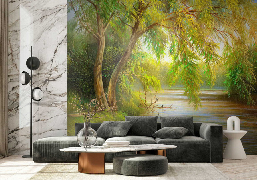 Proměňte svůj prostor pomocí nástěnné malby, díky které budete mít pocit, že jste vstoupili přímo do přírody. Tento okouzlující design zobrazuje klidný strom zdobený svěží zelení a teplými žlutými listy, které dokonale zachycují záři zlaté hodiny. Představte si, že si lebedíte ve svém obývacím pokoji, popíjíte čaj a tato nástěnná malba vám šeptá příběhy z přírody. Je to jako mít mini les přímo na stěně, který přináší veškerou tu osvěžující atmosféru bez jakýchkoli chyb! Ať už se jedná o útulný koutek nebo světlou kancelář, tento kus vybízí ke klidu a inspiraci. Jen se nedivte, když ve vás vyvolá chuť založit si zahrádku!