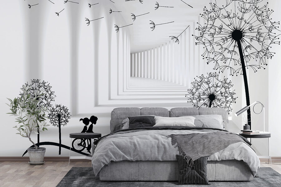 Proměňte svůj prostor pomocí této rozmarné nástěnné malby s chlapcem a dívkou jedoucími na kole zasněnou krajinou plnou pampelišek. Hravé siluety vybízejí k pocitu svobody a dobrodružství a vyvolávají vzpomínky na bezstarostné dětské dny a projížďky zalité sluncem. Představte si, jak se každé ráno probouzíte příjemně překvapeni tímto radostným výjevem, který dodá vašim stěnám šmrnc. Jako byste si do svého domova přinesli kousek nostalgie. Perfektní do obývacích pokojů, dětských pokojů nebo i do toho malého čtecího koutku – tato nástěnná malba není jen dekorace, je to okouzlující cesta, která čeká na své uskutečnění!