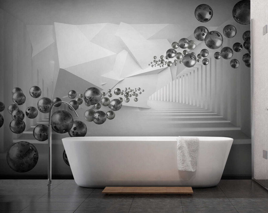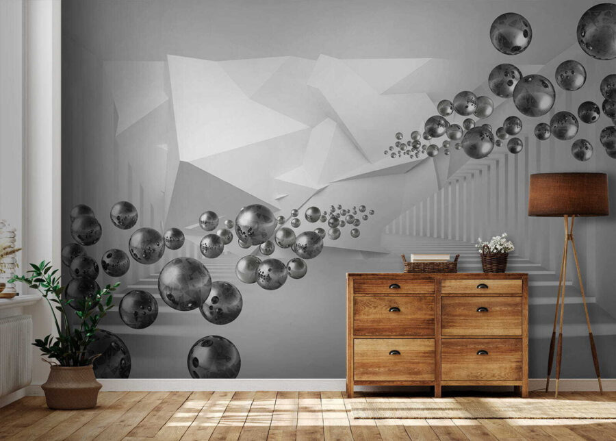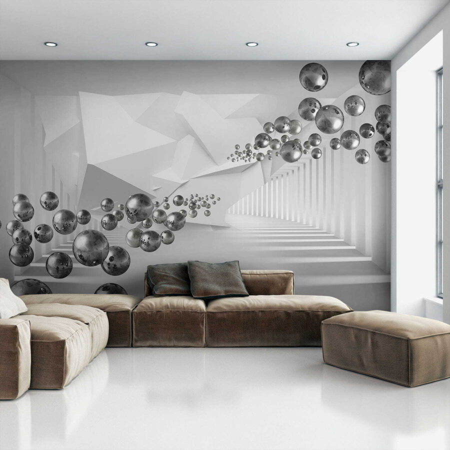 Vstupte na vizuální hřiště s nástěnnou malbou “Plovoucí koule v geometrickém koridoru”, kde je kreativita v centru pozornosti. Představte si, že se procházíte snovou říší rozmarných koulí a ostrých úhlů, které vytvářejí nádherný tanec hloubky a intrik. Je to jako ocitnout se v bludišti, kde každá odbočka přináší nové překvapení. Elegantní, moderní atmosféra je ideální pro jakýkoli prostor, kde vzbudí inspiraci, ať už se jedná o útulnou domácí kancelář nebo živý obývací pokoj. Přátelé budou zvědavě pokukovat a ptát se, jaká kouzla se odehrávají na vašich stěnách. Není to jen dekorace, je to zážitek!