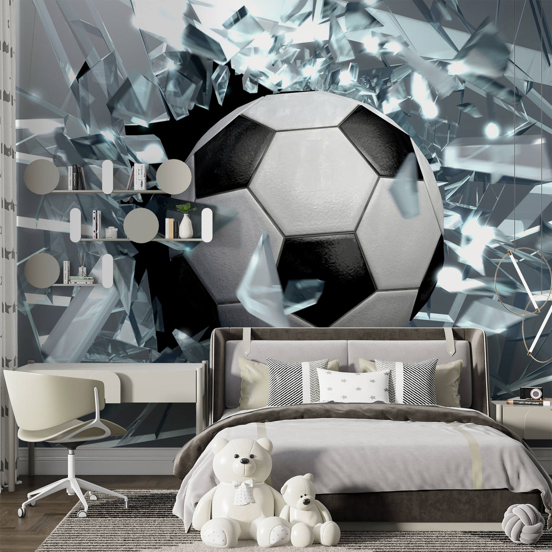 Tato fototapeta promění místnost v živé dobrodružství a přenese vzrušující energii fotbalu přímo na vaši zeď. Představte si silný fotbalový míč, který proráží pomyslnou bariéru, a střepy skla jiskřící živou atmosférou. Jako by váš prostor právě vstřelil nejvyšší gól, takže je ideální pro děti, které sní o tom, že se stanou superhvězdami na hřišti. Jen si to představte – přicházejí kamarádi, oči se rozšiřují a otázky létají. Které dítě by se s touto dynamickou scénou necítilo jako šampion? Je to víc než jen dekorace; je to inspirace, vzrušení a spousta zábavy!