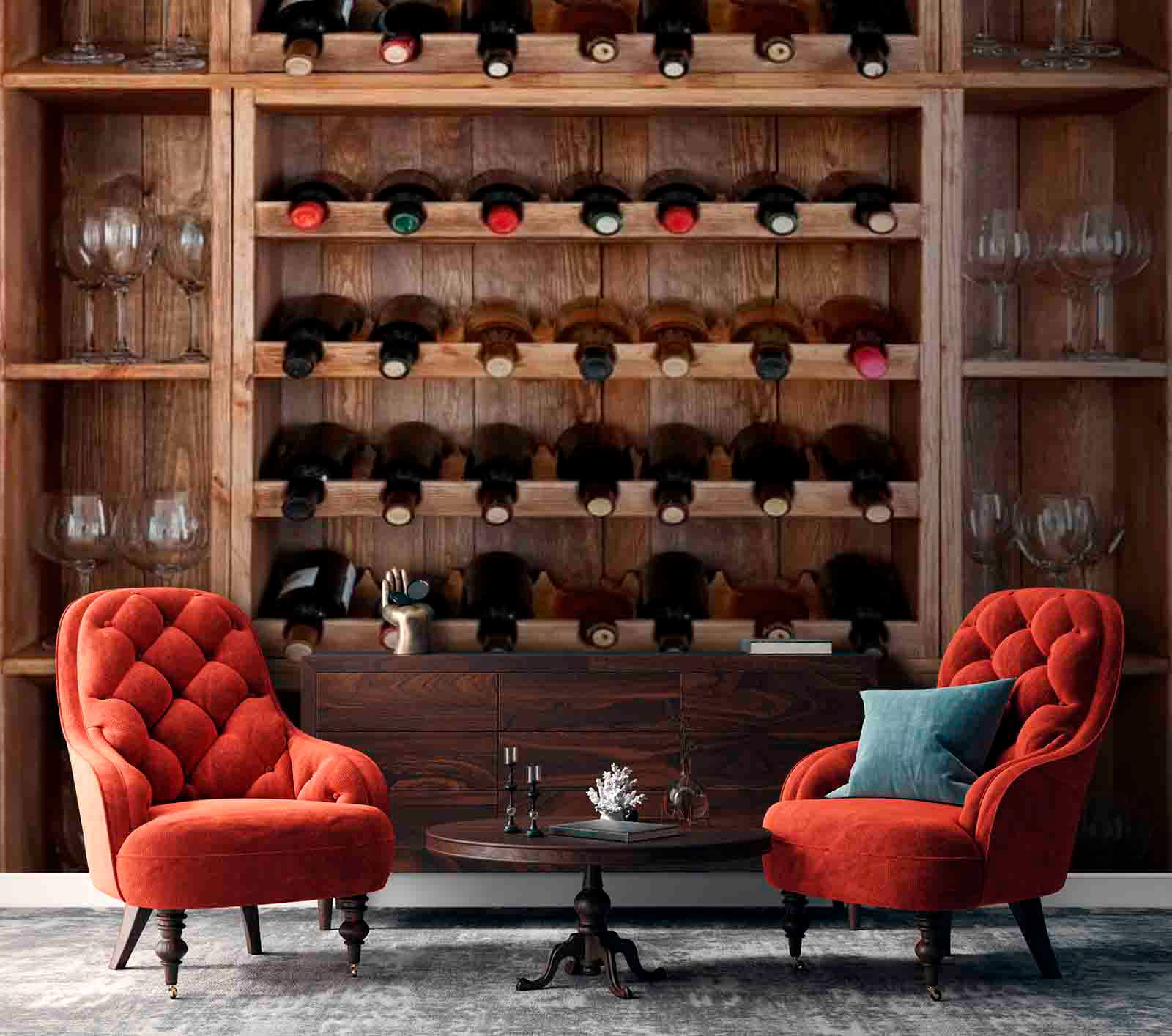 Proměňte svůj prostor pomocí této okouzlující nástěnné malby s lahvemi vína a sklenicemi půvabně seřazenými na rustikálních dřevěných policích. Jako byste každý den vstupovali do útulného vinného sklípku, kde vládne hřejivá a příjemná atmosféra. Představte si, že hostíte přátele na obyčejné večeři a tato nástěnná malba vám ukradne celou show. Zemité tóny přinášejí uvolněnou atmosféru, která je ideální pro popíjení a povídání. Rozproudí konverzaci o oblíbených vínech a o nezapomenutelném výletu na vinici. Není to jen dekorace na zeď, je to zážitek, který dodá každé místnosti vintage šarm a kapku radosti. Na zdraví na stylovou aktualizaci!