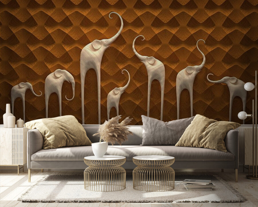 Proměňte jakýkoli prostor pomocí této okouzlující nástěnné malby s nádhernou přehlídkou slonů. Tito mírní obři, ztvárnění uměleckým způsobem, vnesou do vašeho domova pocit fantazie a tepla. Představte si, že vstoupíte do místnosti a máte pocit, jako byste se ocitli na klidném safari, kde jediné zvuky, které slyšíte, jsou jemné šustění listí a vzdálené troubení slonů. Tato nástěnná malba, která je ideální do dětského pokoje nebo útulného obývacího pokoje, podněcuje fantazii a stává se okamžitým tématem k rozhovoru. Každý slon má svou jedinečnou povahu, téměř jako by sdíleli příběhy ze svých dobrodružství. Ať už jde o odpoledne strávené relaxací s knihou nebo živé setkání s přáteli, tato tapeta navodí hravou, ale elegantní atmosféru. Připravte se na úsměvy, nostalgii a možná i pár fantazijních snů o putování divočinou!