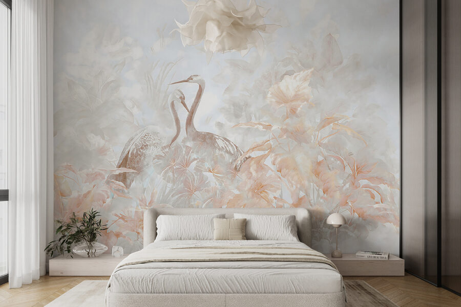 Představte si, že máte přímo na zdi klidný únik s nástěnnou malbou “Jeřábi uprostřed bujné vegetace”. Není to jen dekorace, je to celá nálada – ideální pro každého, kdo v sobě zbožňuje trochu elegance přírody. Dva půvabní jeřábi se prolínají uprostřed moře hebkých listů a vytvářejí úžasnou a klidnou atmosféru. Díky jemným barvám si připadáte jako v zasněném mlhavém ránu na nějakém exotickém místě (aniž byste museli naskočit do letadla). Je to jako stisknout tlačítko pauzy v životě a nadechnout se chladivé, osvěžující zahrady. Tato nástěnná malba je elegantním středobodem vašeho obývacího pokoje nebo dokonce klidného útočiště v ložnici. Máte chuť na každodenní dávku zenu? Tahle nástěnná malba se o vás postará. Navíc se jistě stane podnětem ke konverzaci – kdo by si nechtěl povídat o tak klidné a krásné scéně přímo u vás doma?