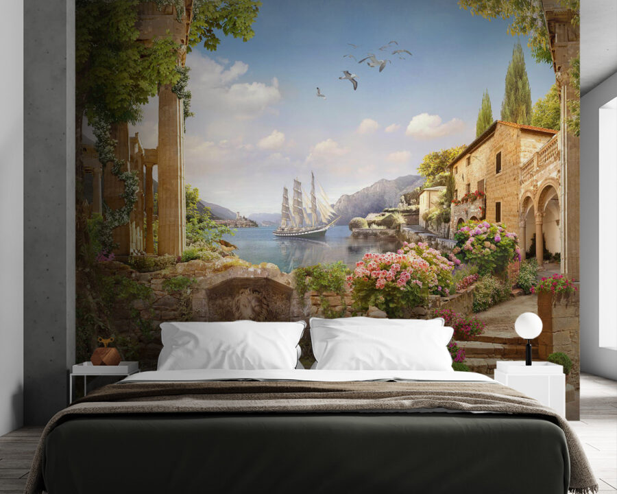 S touto úžasnou nástěnnou malbou s kamennou budovou u klidné vody se dostanete do zasněného úniku. Představte si to: sluncem políbené dny a jemný vánek, jak kolem proplouvá ladná loďka, zatímco barevné květiny se rozlévají po okrajích zestárlého kamene. Atmosféra? Čistý klid. Tato nástěnná malba přináší kus přírody do interiéru, takže se v každé místnosti budete cítit jako na útulném útěku. Přátelé se možná dokonce zeptají, zda jste svůj prostor proměnili v okouzlující přímořský únik! Je ideální pro vyvolání pocitů toulek, a přitom se můžete uvelebit doma. Proměňte své stěny a nechte dobrodružství začít!