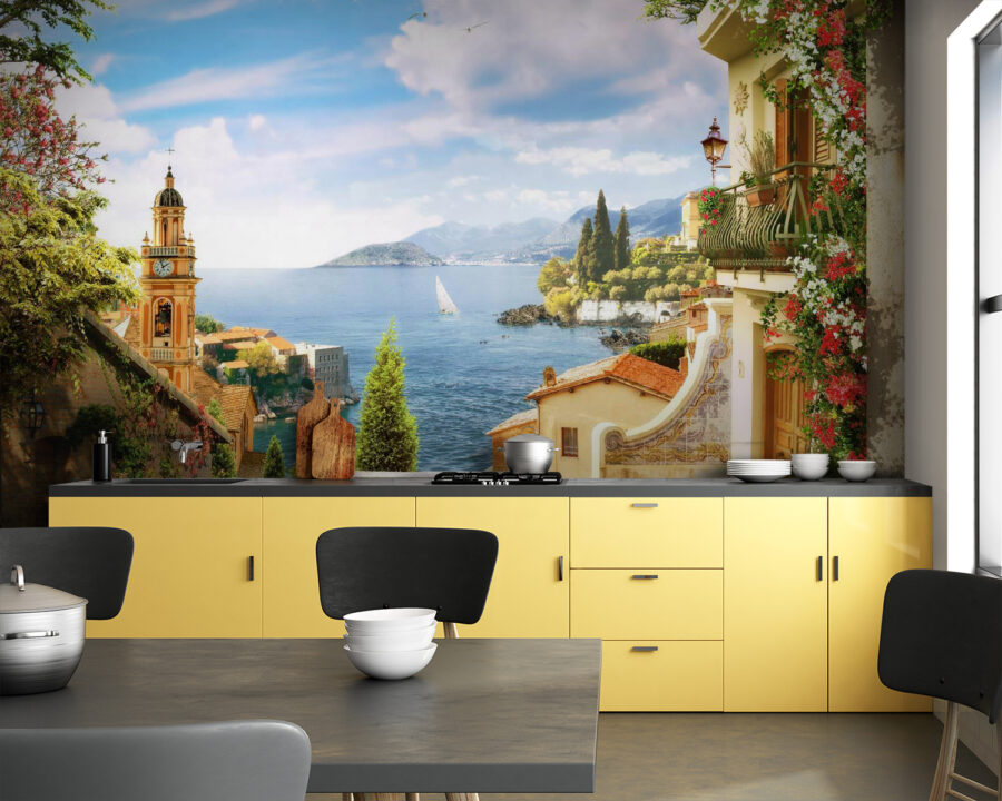 Představte si, že pokaždé, když vstoupíte do svého pokoje, vstoupíte do klidné středomořské vesnice – přesně to dokáže tato “Nástěnná malba květináč s růžovými květy”! Je to jako mini dovolená na vaší zdi. Zářivě růžové květy se kaskádovitě rozprostírají na nádherných kamenných stěnách a v pozadí se naskýtá úžasný pohled na sluncem políbenou přímořskou krajinu. Je ideální pro dodání nádechu klidu do jakéhokoli prostoru, téměř jako byste slyšeli vzdálené zvonění kostelního zvonu a jemné vlny šplouchající na pobřeží. Ať už jste příznivci moderních dekorací, nebo jen milujete jedinečné kousky, tato fototapeta promění každou obyčejnou zeď v malebný ráj. A buďme upřímní, kdo by nechtěl mít doma kousek této snové scenérie? Navíc je to skvělý začátek konverzace – vaši přátelé se určitě budou ptát, kde jste našli tak úžasný kousek!
