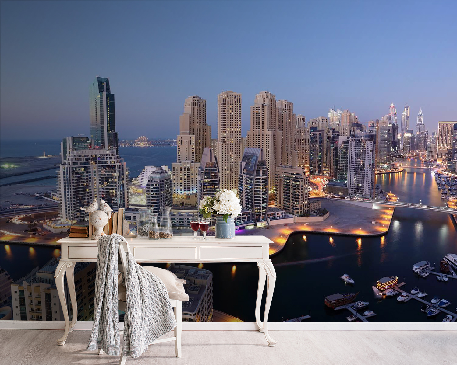 Uchopte kousek městského kouzla s touto podmanivou nástěnnou malbou s názvem “Pohled na budovu z vysokého úhlu”. Představte si, že vstoupíte do svého prostoru a okamžitě se přenesete do rušné městské krajiny, kde se elegantní mrakodrapy setkávají s klidným nábřežím. Ideální pro nadšence do architektury nebo pro ty, kteří prostě jen vibrují touto elegantní, moderní estetikou. Světla se jemně třpytí, zatímco město pod vámi bzučí životem – ano, je to tak sugestivní.