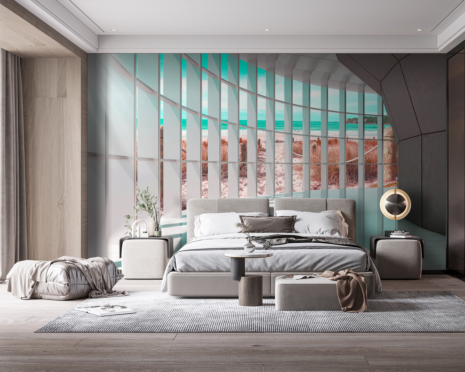 Představte si, že vejdete do pokoje zalitého teplým slunečním světlem, kde vás skrze elegantní moderní okna vítá klidná modř oceánu. Přesně to získáte s nástěnnou malbou “Sunlit Room with Ocean View”. Není to jen nástěnná malba – je to mini dovolená pro vaše stěny! Ideální pro dodání nádechu pobřežního klidu do jakéhokoli prostoru. Ať už je to váš obývací pokoj nebo pracovní prostor, díky tomuto úžasnému 3D designu si budete připadat, jako byste byli přímo na pláži. Skoro slyšíte vlny, že? Ponořte se do tohoto pohledu a nechte kousek oceánu uklidnit váš den. Krásný a relaxační, díky němu se váš domov bude cítit jako přímořský ráj. 🌊🌞