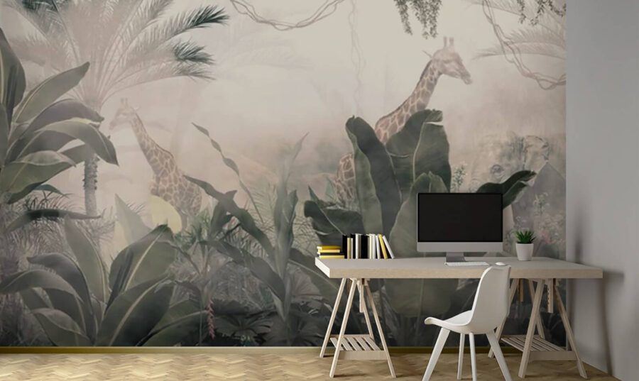 Proměňte svůj prostor v pohádkovou džungli s touto tapetou, na které jsou vyobrazeny ladné žirafy vykukující ze svěží zeleně. Je to jako vstoupit do snu, kde vládne příroda. Představte si to: ráno popíjíte kávu, sluneční paprsky pronikají dovnitř a na vaší zdi klidně žvýká listy žirafa. Kdo potřebuje safari, že? Vrstvy listoví vytvářejí pocit hloubky, díky čemuž se malé místnosti zdají prostornější. Je to téma k rozhovoru – hosté se určitě zastaví a budou obdivovat. Ideální pro dobrodružné duše nebo kohokoli, kdo chce uniknout každodennímu životu. Trocha magie přímo u vás doma!