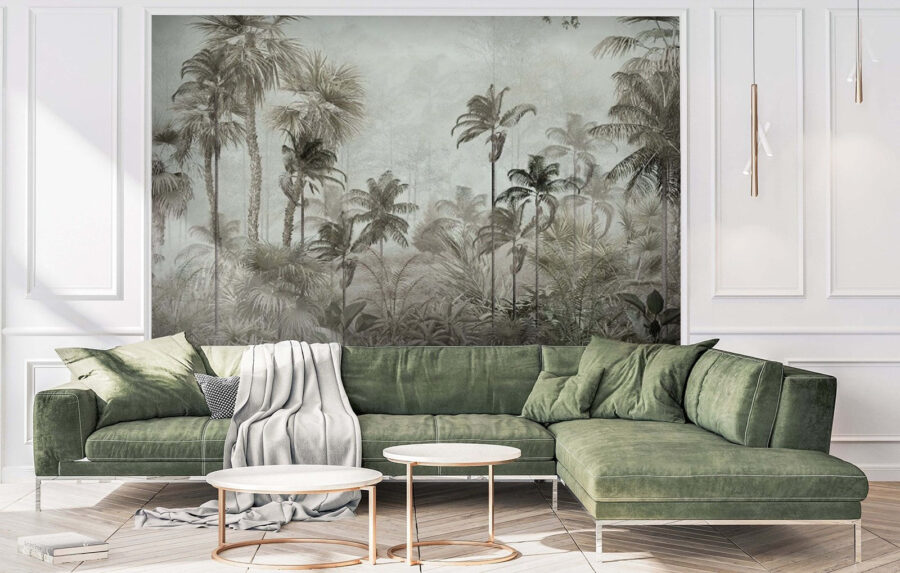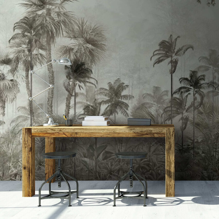 Proměňte jakýkoli pokoj v klidné útočiště díky této úchvatné tapetě s motivem skupiny palem vyčnívajících z mlhavého lesa. Je to jako vstoupit do snové džungle, aniž byste opustili domov. Jemné odstíny a mlhavá atmosféra vytvářejí klidnou, relaxační atmosféru – ideální pro lenošivé odpoledne nebo útulné večery. Představte si, jak se zachumláte s knížkou nebo popíjíte svůj oblíbený nápoj a cítíte se obklopeni přírodou. Nemluvě o tom, že je to skvělý námět k rozhovoru. Hosté se jistě budou ptát, odkud se ten klidný ráj vzal! Objevte divokou stránku dekorací a nechte se touto tapetou unést.