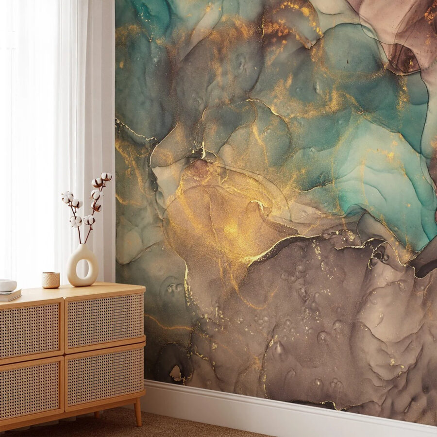 Proměňte nudnou stěnu v ohromující ústřední bod pomocí nástěnné malby s abstraktními mramorovými texturami a sytými akcenty v barvě teal. Představte si, že vstoupíte do místnosti, kde víry zemitých tónů šeptají příběhy o přírodě a vyzývají každého hosta, aby se zastavil a nasál atmosféru. Je to jako mít umělecké dílo, které se neustále vyvíjí – změňte úhel pohledu a design zatančí s vámi. Tato nástěnná malba, která se skvěle hodí do útulného koutu nebo na odvážnou stěnu, dodává prostoru hloubku a osobitost. Možná vás po dlouhém dni inspiruje ke chvilce zenu. Tak proč nenechat své stěny promlouvat?