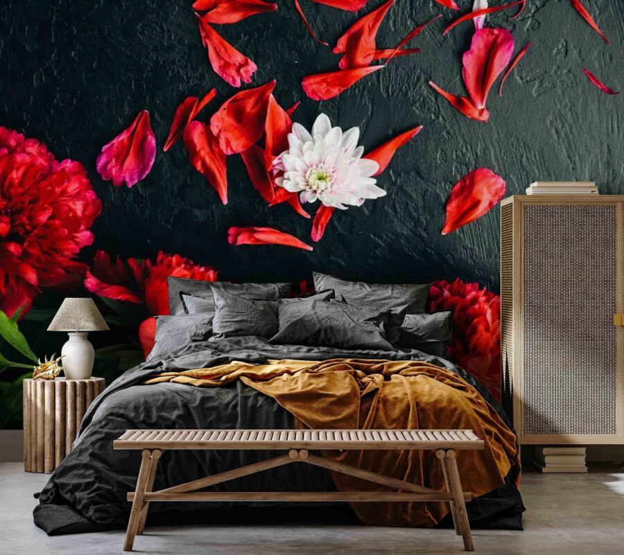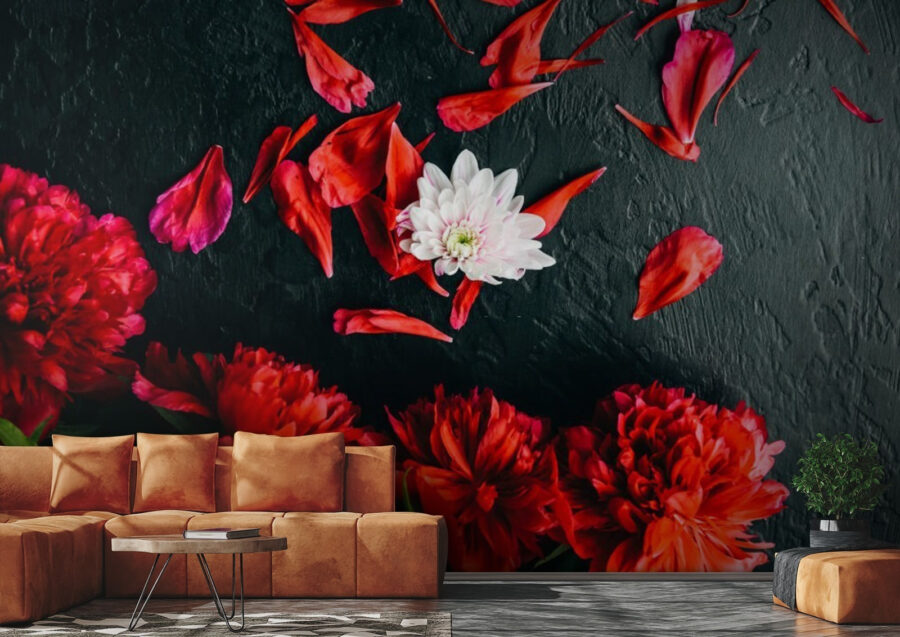 Proměňte svůj prostor pomocí této úchvatné tapety s motivem zářivé skupiny červených pivoněk na elegantním černém pozadí. Je to jako přivést si zahradu dovnitř – bez otravného hmyzu! Představte si, že se každý den probouzíte s těmito svůdnými květy, jejichž výrazné barvy vyzařují radost a teplo v každé místnosti. Kontrast ohnivých okvětních lístků na tmavém povrchu je prostě úchvatný; je to trochu jako popíjet kávu v útulné kavárně, kde vás atmosféra obklopuje jako objetí. Ideální do obývacího pokoje nebo třeba do moderní kanceláře; kdo by nechtěl pracovat obklopen takovou krásou? S touto tapetou nejen zdobíte, ale vytváříte zážitek. Každý pohled vám dodá trochu více inspirace!