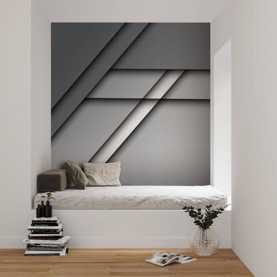 Proměňte holou stěnu ve stylovou konverzaci pomocí této výrazné nástěnné malby. Sytá souhra šedé a bílé barvy vytváří sofistikované pozadí, které není nudné. Ať už se jedná o útulný obývací pokoj nebo elegantní kancelář, tato fototapeta jemně pozvedne atmosféru. Představte si, že popíjíte kávu a vychutnáváte si klid, který přináší – jako objetí oblíbeného svetru v chladném dni. A hele, perfektně se hodí k barevnému nábytku nebo rostlinám. Kdo by řekl, že jednoduchý design může působit tak osvěžujícím dojmem? Jde jen o to vytvořit prostor, ve kterém se budete cítit tak akorát.