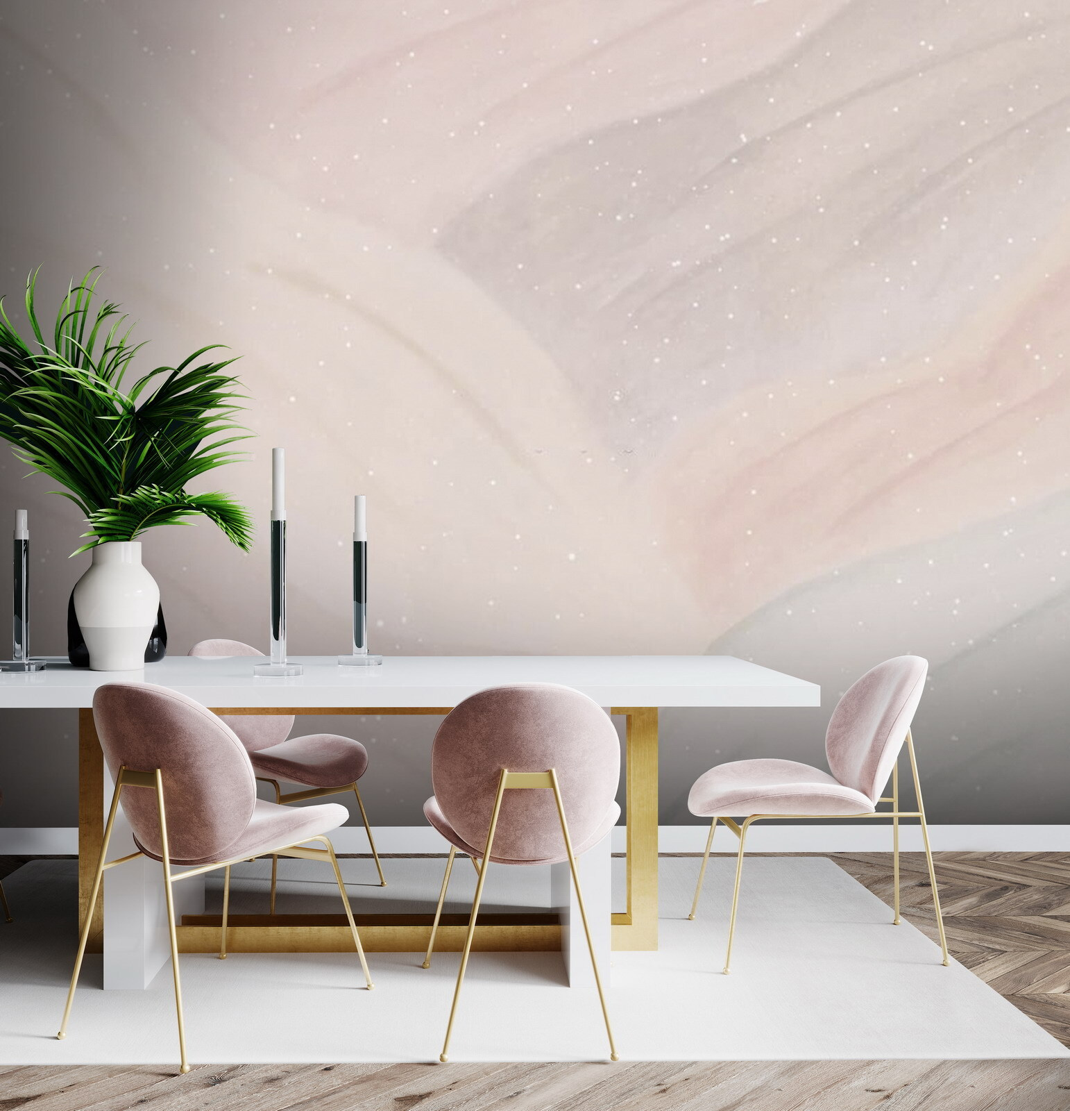 Proměňte každou místnost díky okouzlujícímu vzhledu nástěnné malby Bílé tečky na růžovém pozadí. Je to jako dát svým stěnám jemné objetí barev a rozmarů. Představte si, že vejdete do prostoru, kde hravé tečky tančí na uklidňujícím růžovém plátně – ideální pro rozproudění radosti a kreativity. Tato nástěnná malba dodává šmrnc veselí, aniž by zahlcovala smysly, takže je ideální pro útulný čtecí koutek nebo dětský koutek. Je dostatečně jemná, aby zachovala klid, ale dostatečně zábavná, aby vás rozesmála pokaždé, když půjdete kolem. Mluvte o tom, jak se s ním dá začít mluvit!