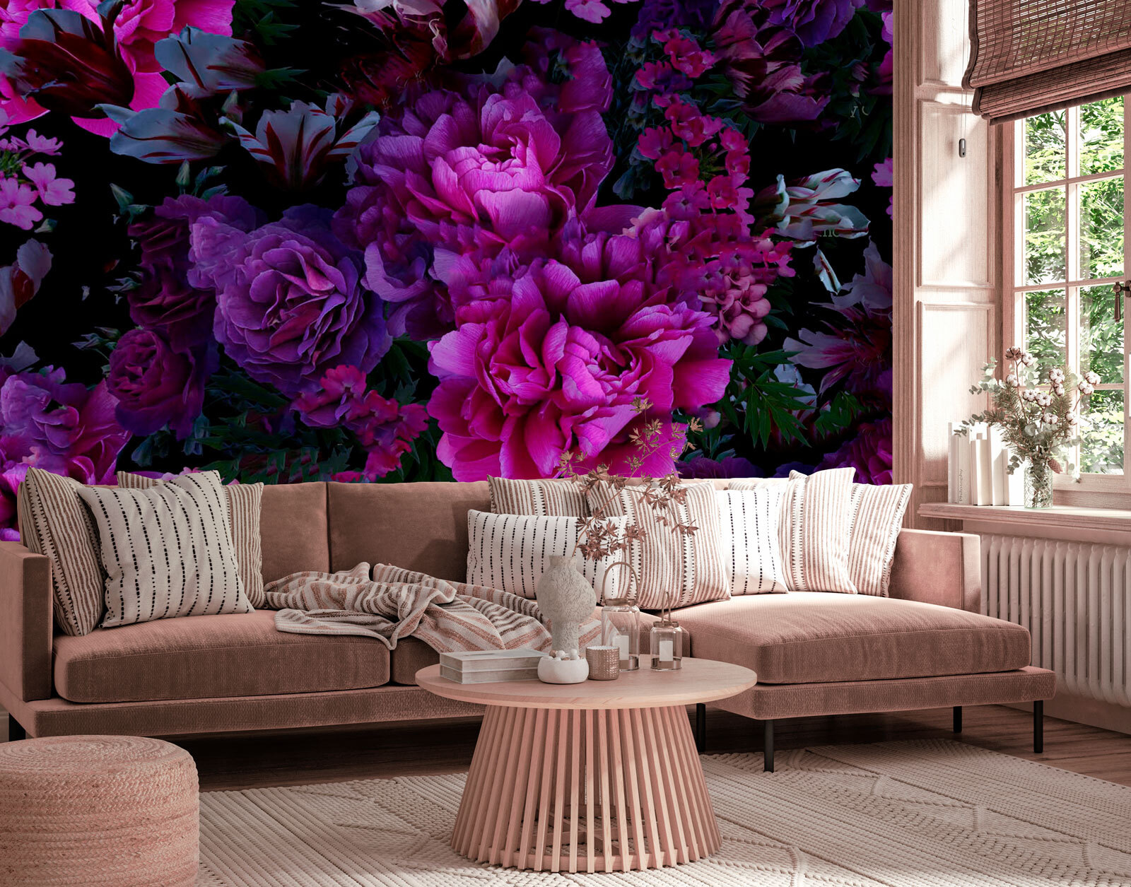 Proměňte jakoukoli stěnu v živoucí únik s touto úžasnou nástěnnou malbou “Skupina fialových květin”. Představte si, že vejdete do místnosti, která připomíná tajnou zahradu – kde se levandule setkává s purpurovou – a vytváří atmosféru, která je uklidňující i povzbuzující. Syté barvy vystupují na tajemném tmavém pozadí, což z něj činí dokonalý ústřední bod. Přemýšlejte o tom, jak by mohla rozzářit útulný čtecí koutek nebo dodat šmrnc fádní chodbě. Přátelé se budou zastavovat uprostřed věty, fascinováni květy. Kdo by řekl, že stěna může být tak živá? Každý pohled odhalí něco nového a promění každý den v mini jarní dobrodružství.