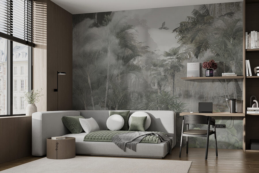Představte si toto: vejdete do místnosti a je to jako vstoupit do snového ráje v džungli. Přesně takový je pocit z nástěnné malby “Pták letící v oblacích”. Tato úžasná nástěnná malba, která je součástí kategorií “Nástěnné malby stromů džungle” a “Oblíbené nástěnné malby”, zachycuje klid a mystiku tropické divočiny. Všude kolem máte bujnou zeleň a přímo nad hlavou majestátního ptáka vznášejícího se po mlhavé obloze – mluvte o tom, jak vnést atmosféru džungle přímo do vašeho prostoru!