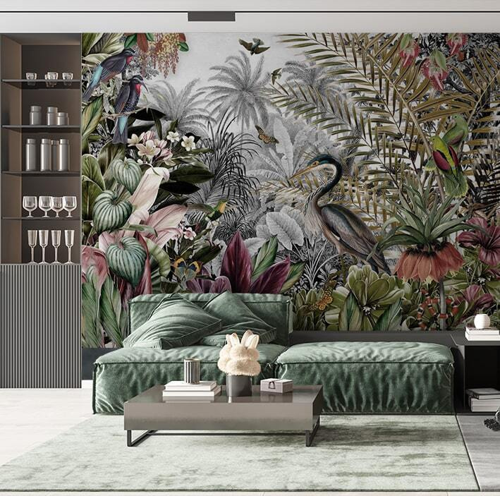 Sytá zeleň a hravé odstíny exotických tvorů vytvářejí vizuální hostinu, která vyvolává radost. Je to jako mít mini dovolenou přímo na stěnách. Přátelé se možná zastaví jen proto, aby ji obdivovali. Vážně, kdo by se nechtěl zchladit ve stínu těch ilustrovaných palem? Celkově vzato, tato nástěnná malba není jen dekorací, je to atmosféra, která dělá každý den o něco výjimečnějším. Kdo ví, třeba vás dokonce inspiruje ke spontánnímu útěku!