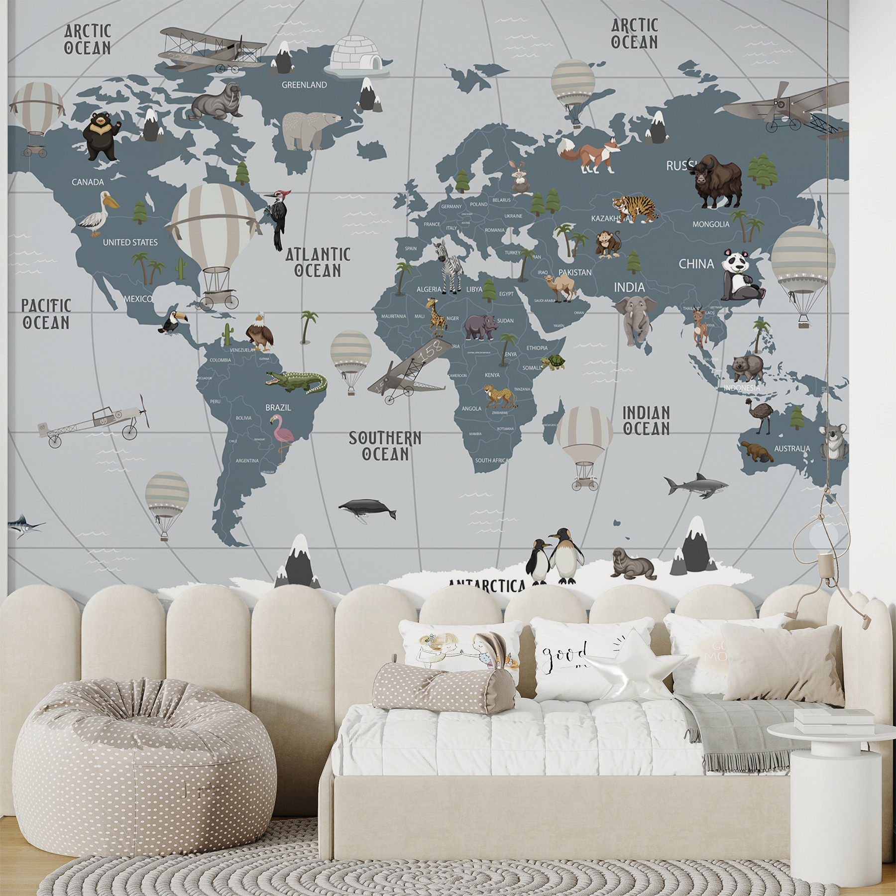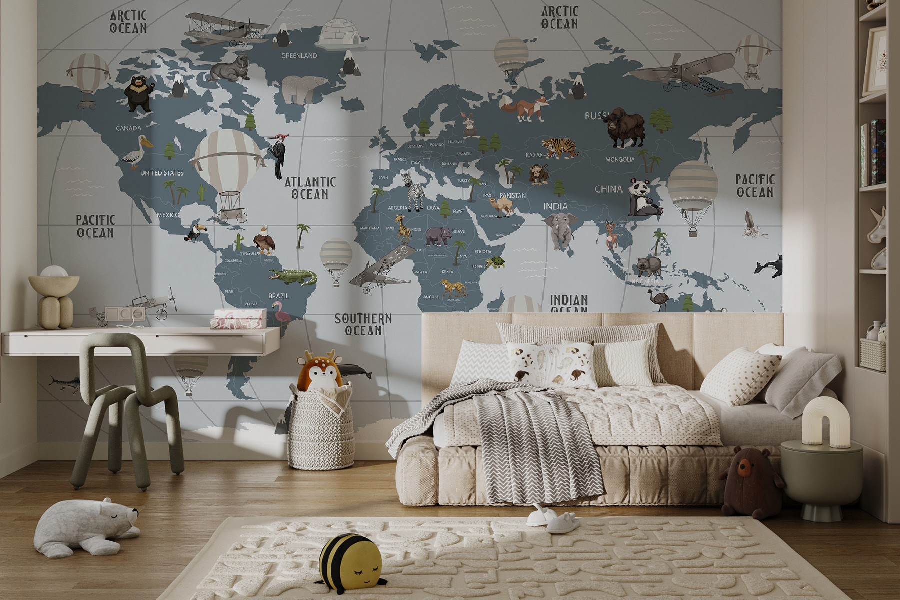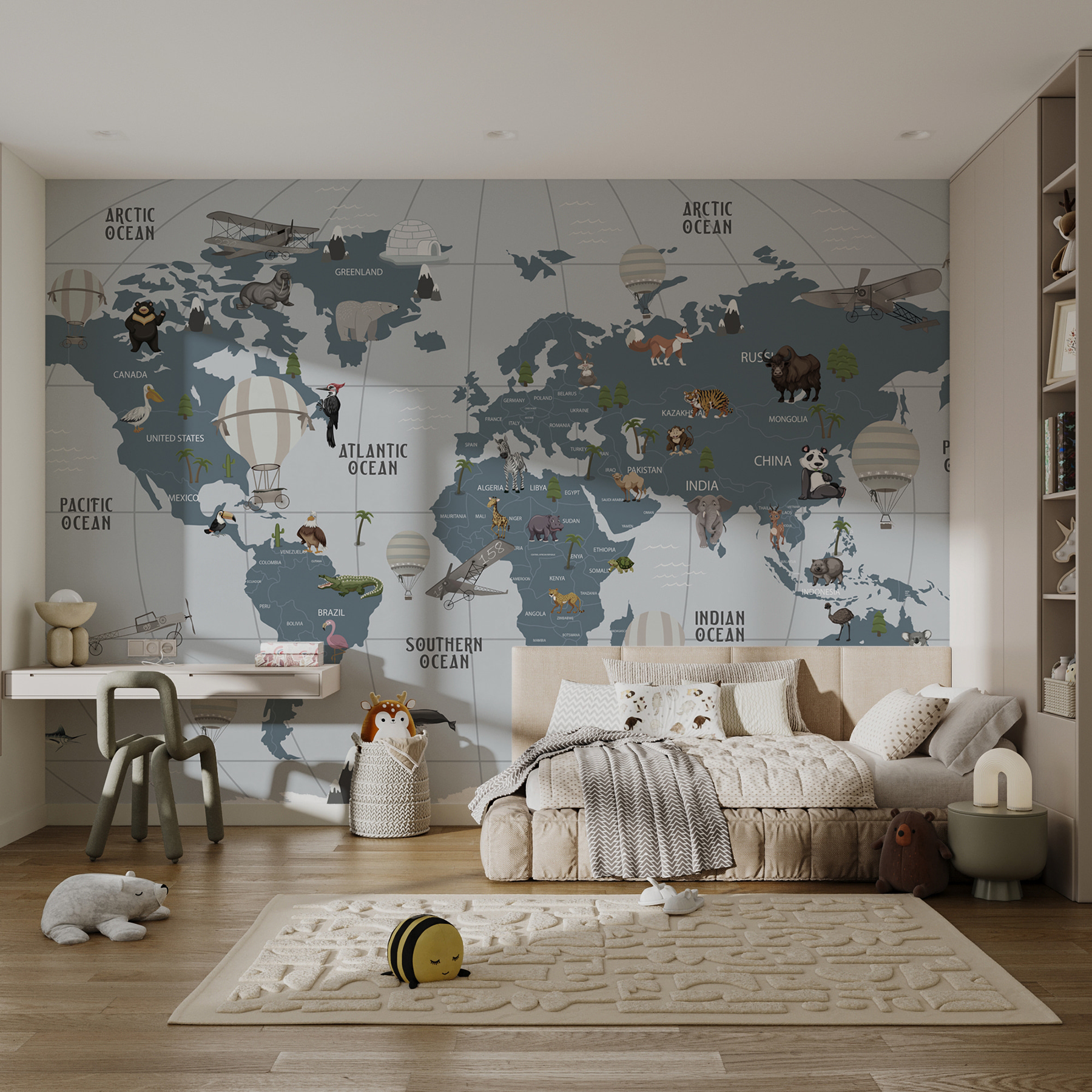Představte si svět, ve kterém se dobrodružství vznáší vysoko, a to vše v pohodlí vašeho pokoje. Tato nástěnná malba “Horkovzdušný balón v oblacích” je jako vstupenka na cesty, ideální pro malé průzkumníky i snílky. Díky okouzlujícím horkovzdušným balónům vznášejícím se nad hravou mapou mohou děti cestovat po celém světě, aniž by si musely balit kufry. Představte si chichotání a vzrušení, když ukazují na džungle, oceány a chlupaté kamarády. Není to jen dekorace, je to inspirativní kulisa pro příběhy, smích a špetku fantazie. Stěny se stanou okny do vzdálených zemí, a kdo by to neměl rád? Skvěle se hodí do dětského pokoje nebo herny, kde dodá teplo a rozmar. Nechť dobrodružství začnou!