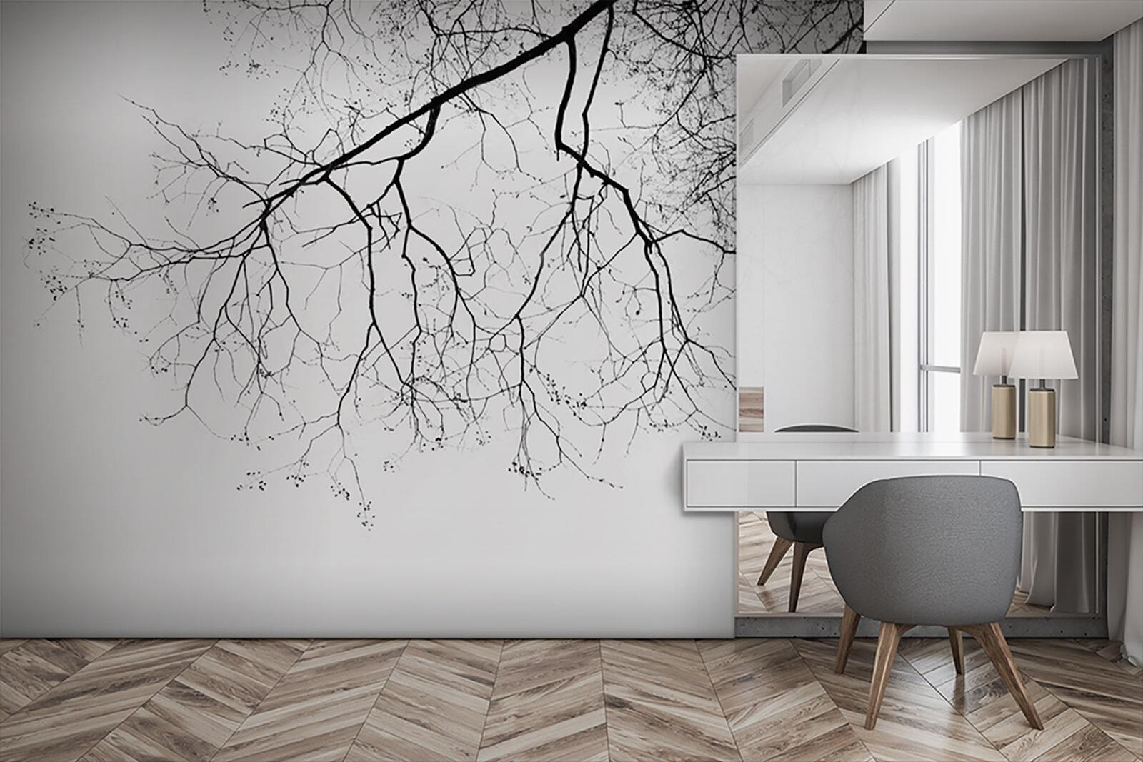 Chcete do svého prostoru vnést nádech přírody bez nepořádku z padajícího listí? Podívejte se na tuto úžasnou nástěnnou malbu holých větví vytvářejících složité vzory. Je to jako přenést klid zasněženého stromového háje přímo do vašeho obývacího pokoje. Snadno se na ni dívá a je plná jemného dramatu, působí jako okamžik zamrzlý v čase, takový, o kterém tajně doufáte, že by se mohl proměnit v ducha stromu.
