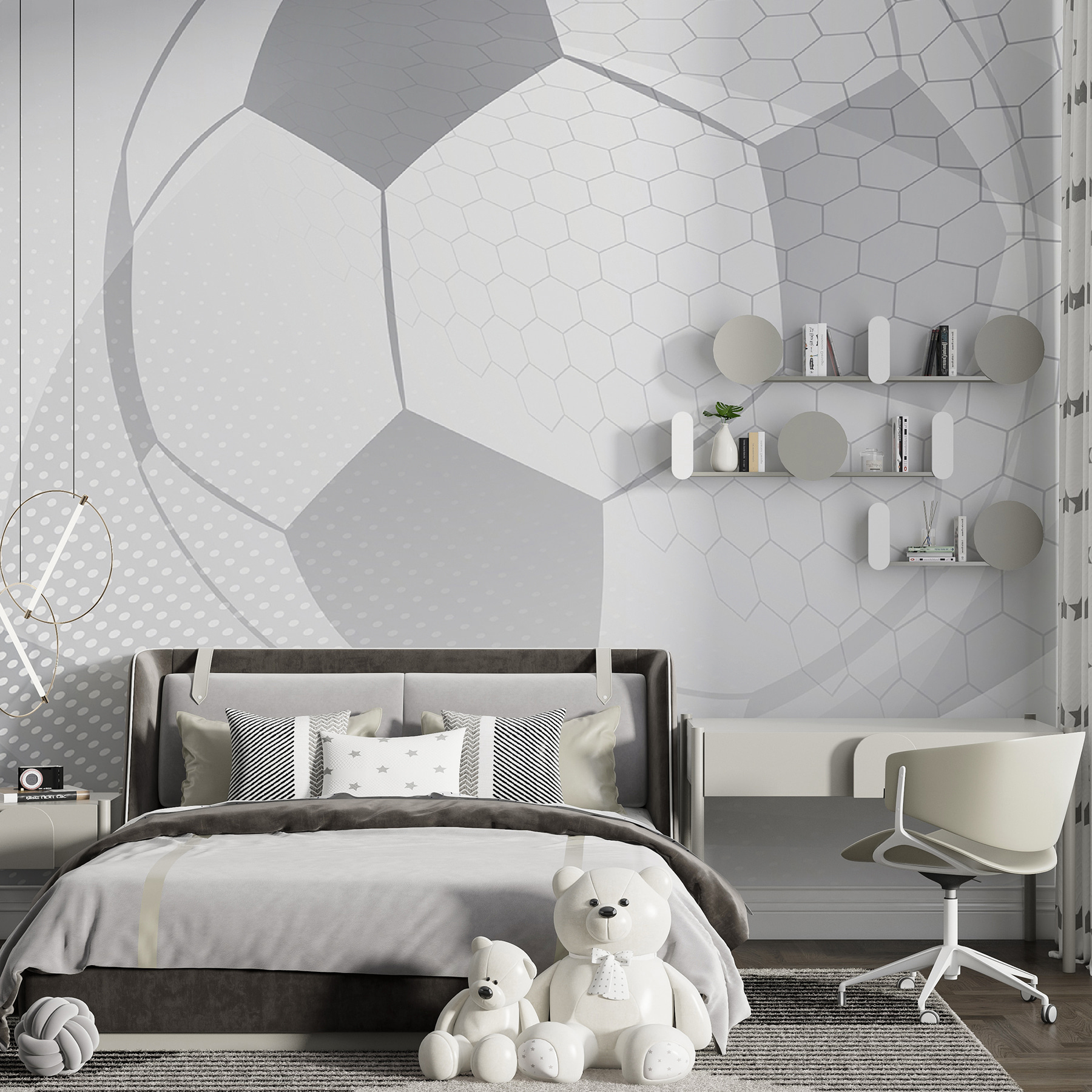 S touto geometrickou nástěnnou malbou v odstínech šedé barvy proměníte jakýkoli prostor ve sen milovníků fotbalu. Představte si děti, které si kopou do hlavy, zatímco jsou obklopeny hravým designem, který podněcuje jejich představivost. Tato nástěnná malba, která se skvěle hodí do herny nebo ložnice, dodává klasickým fotbalovým vibracím moderní nádech. Chladné vzory a tvary přitahují pozornost a vytvářejí dynamickou atmosféru, která podněcuje vzrušení a zábavu. Je to jako každodenní oslava gólu – bez špinavých svačin! Připravte se fandit kreativitě, jednu zeď po druhé.