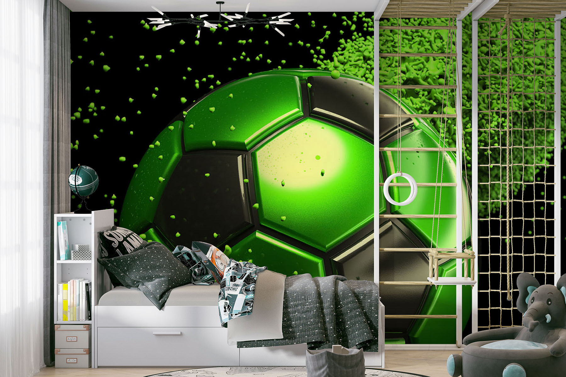 Proměňte jakýkoli prostor pomocí této hravé nástěnné malby se zelenými a černými šestiúhelníky posetými drobnými tečkami. Je to jako výbuch energie, který přinese vzrušení z fotbalového hřiště přímo k vám domů. Představte si to: přátelé se sejdou na den zápasu a místo holých stěn je přivítá tento živý design. Je to dokonalá kulisa pro živé diskuse – možná i pro trochu přátelské rivality. Díky zářivým barvám budete snít o vítězných gólech a vzrušujících okamžicích. Ať se o vašich stěnách mluví jako o městě a ať se rozproudí dobrá nálada!
