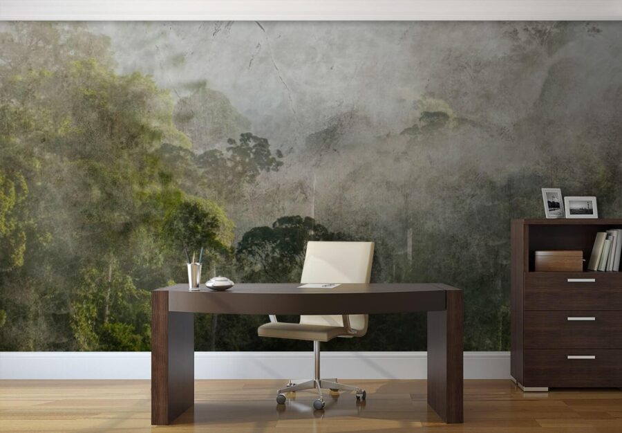 Představte si, že vstupujete do snového zamlženého lesa, aniž byste opustili svůj útulný obývací pokoj. Tato nástěnná malba „Zamlžený les se stromy“ přináší veškeré kouzlo přírody přímo na vaše stěny. Jemné zelené a mlhavé šedé odstíny vytvářejí klidnou, téměř nadpozemskou atmosféru, díky níž máte pocit, jako byste měli kousek divočiny schovaný doma – ideální pro snění nebo popíjení ranní kávy.