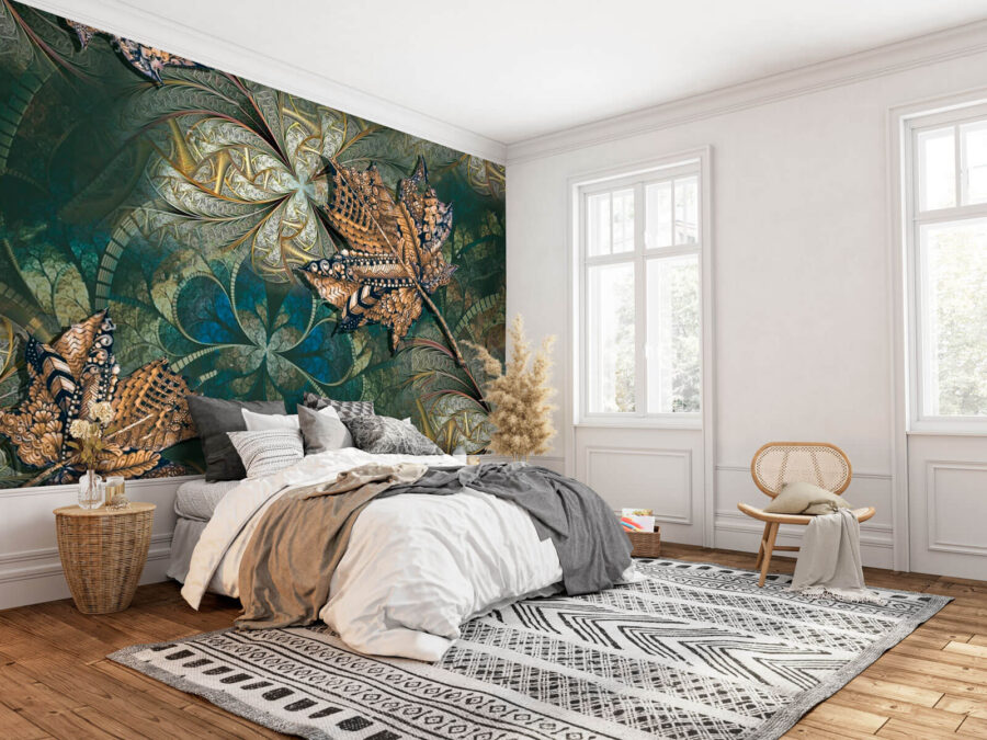 Představte si, že vejdete do místnosti, která působí jako útulný lesní úkryt – tato nástěnná malba přesně to dokáže! Díky živým listům tančícím na bohatém barevném pozadí je to, jako by se matka příroda rozhodla uspořádat malou párty přímo na vaší zdi. Složité vzory na každém listu mají svůj příběh a vybízejí ke zvědavosti každého, kdo se na ně podívá. Představte si, jak si lebedíte s šálkem kávy a obdivujete, jak se barvy mění se světlem v průběhu dne. Je to typ nástěnné malby, která vyvolává snění a v každém prostoru vyvolává pocit života – ideální pro ty, kteří touží po doteku přírody v interiéru. Skutečná pastva pro oči a fantastický podnět ke konverzaci!