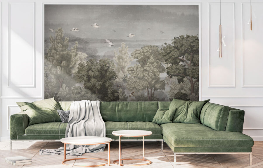 Představte si to: vejdete do místnosti a najednou je tam – nástěnná malba ptáků létajících vysoko na obloze, obklopená bujnou zelení. Je to jako vstoupit do vlastní tajné zahrady. Už cítíte ten klid? A teď si představte jemný vánek, který šumí v listech pokaždé, když se na ni podíváte. Je to víc než jen dekorace – je to mini únik z každodenní rutiny.