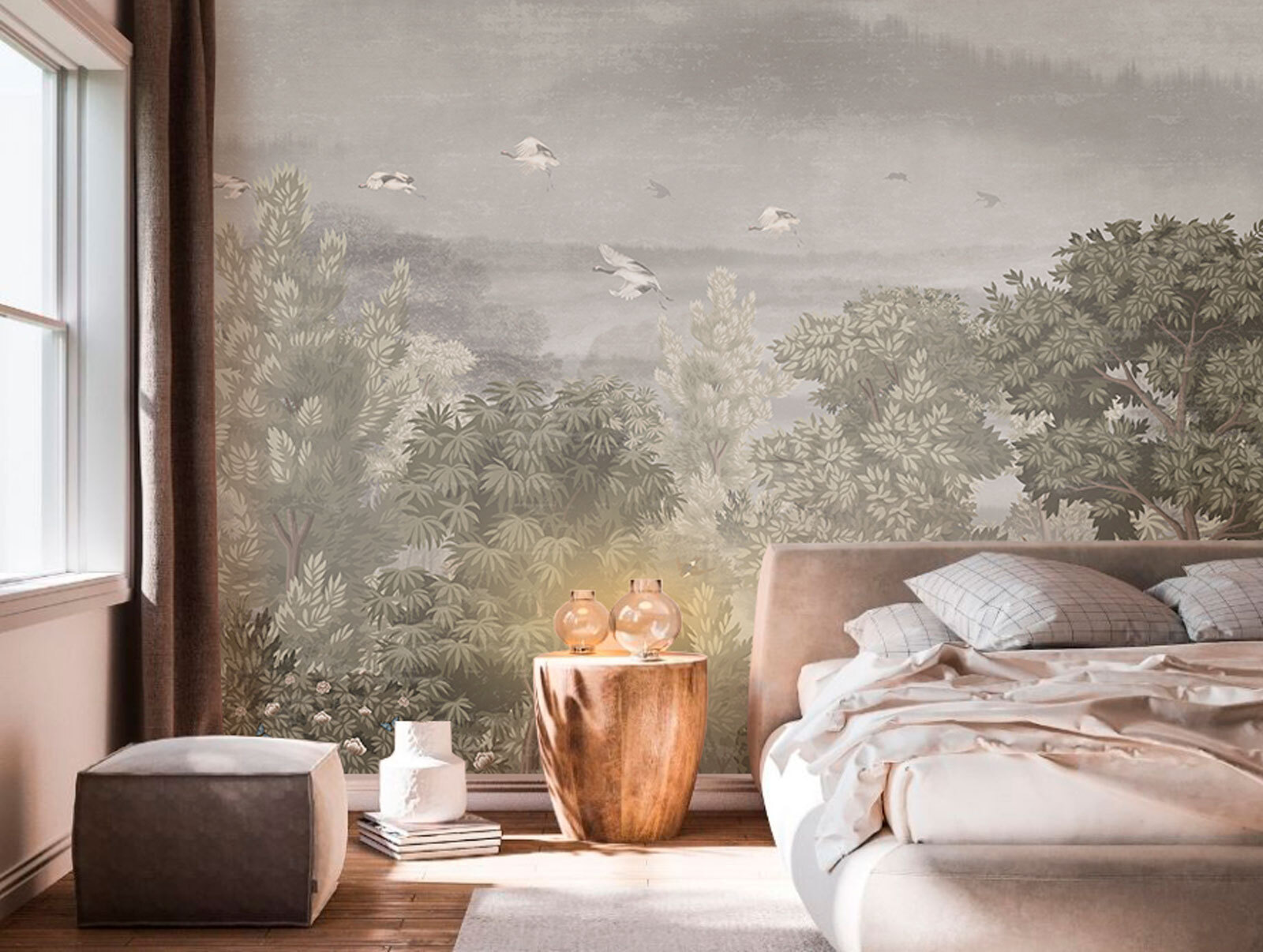 Představte si to: vejdete do místnosti a najednou je tam – nástěnná malba ptáků létajících vysoko na obloze, obklopená bujnou zelení. Je to jako vstoupit do vlastní tajné zahrady. Už cítíte ten klid? A teď si představte jemný vánek, který šumí v listech pokaždé, když se na ni podíváte. Je to víc než jen dekorace – je to mini únik z každodenní rutiny.
