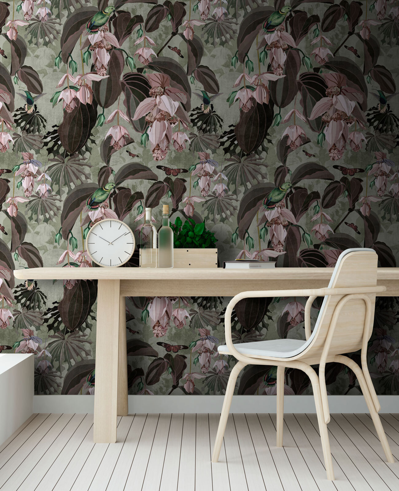 Proměňte jakoukoli místnost v pohádkovou zahradu s „nástěnnými malbami s motivem květin a ptáků“. Představte si, že se probudíte obklopeni jemnými květy a veselými ptáčky poletujícími kolem vás. Je to jako mít přímo ve svém obývacím pokoji malý přírodní ráj! Jemné růžové a syté zelené barvy vytvářejí uklidňující atmosféru, ideální pro popíjení ranní kávy nebo čtení dobré knihy. Kdo by navíc nechtěl ohromit hosty nástěnnou malbou, která působí živě? Tato tapeta dodává šarm a osobnost a každý pohled na ni je jako malý únik do přírody. Ideální pro všechny milovníky přírody nebo pro kohokoli, kdo chce jen přidat trochu radosti do svého domova!