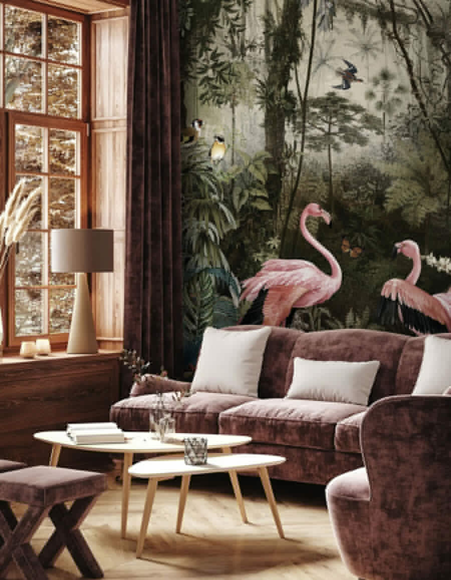 Představte si, že vstoupíte do svěží džungle plné půvabných plameňáků – přesně to do vašeho prostoru vnese tato nástěnná malba. Je ideální pro dodání jedinečného vkusu, je to jako mít malý kousek exotického ráje přímo na zdi. Zářivé růžové barvy plameňáků vynikají na pozadí sytě zelené barvy džungle. Je tak detailní, že si budete připadat jako na expedici pokaždé, když se na něj podíváte. Ideální pro každého, kdo touží po špetce dobrodružství ve svém interiéru. Vážně, kdo by těm okouzlujícím plameňákům odolal? Mám pocit, že by se k vám mohli připojit a dát si s vámi čaj!