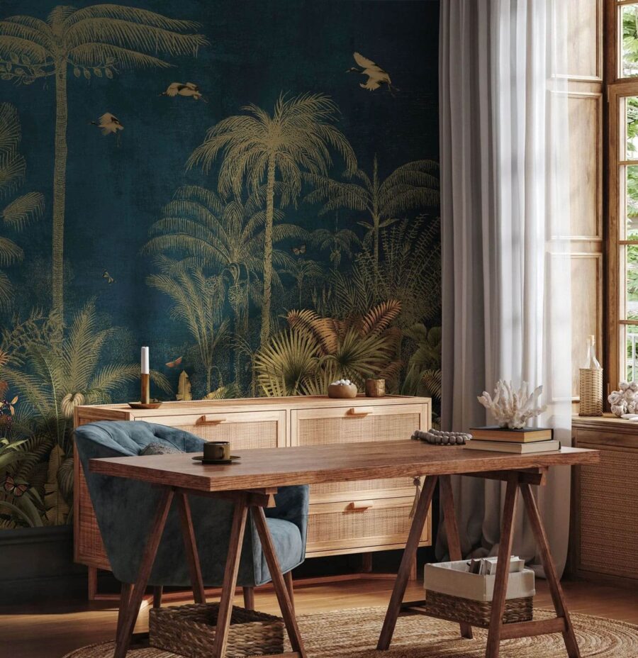 Proměňte svůj prostor pomocí této úchvatné tapety, na které ožívají bujné palmy a veselé ptáky na pozadí snové scenérie. Představte si, že vcházíte do místnosti, která působí jako tropický ráj – vážně, kdo by potřeboval dovolenou, když má na zdi takovou krásu? Syté barvy a propracované detaily vytvářejí uklidňující atmosféru, která je ideální pro útulný koutek na čtení nebo oživení jakékoli nudné zdi. Je to jako přivést si kousek přírody dovnitř, ale bez komárů. Přátelé se budou divit, jestli jste si najali drahého dekoratéra – netuší, že za tím kouzlem stojí jen tato tapeta!