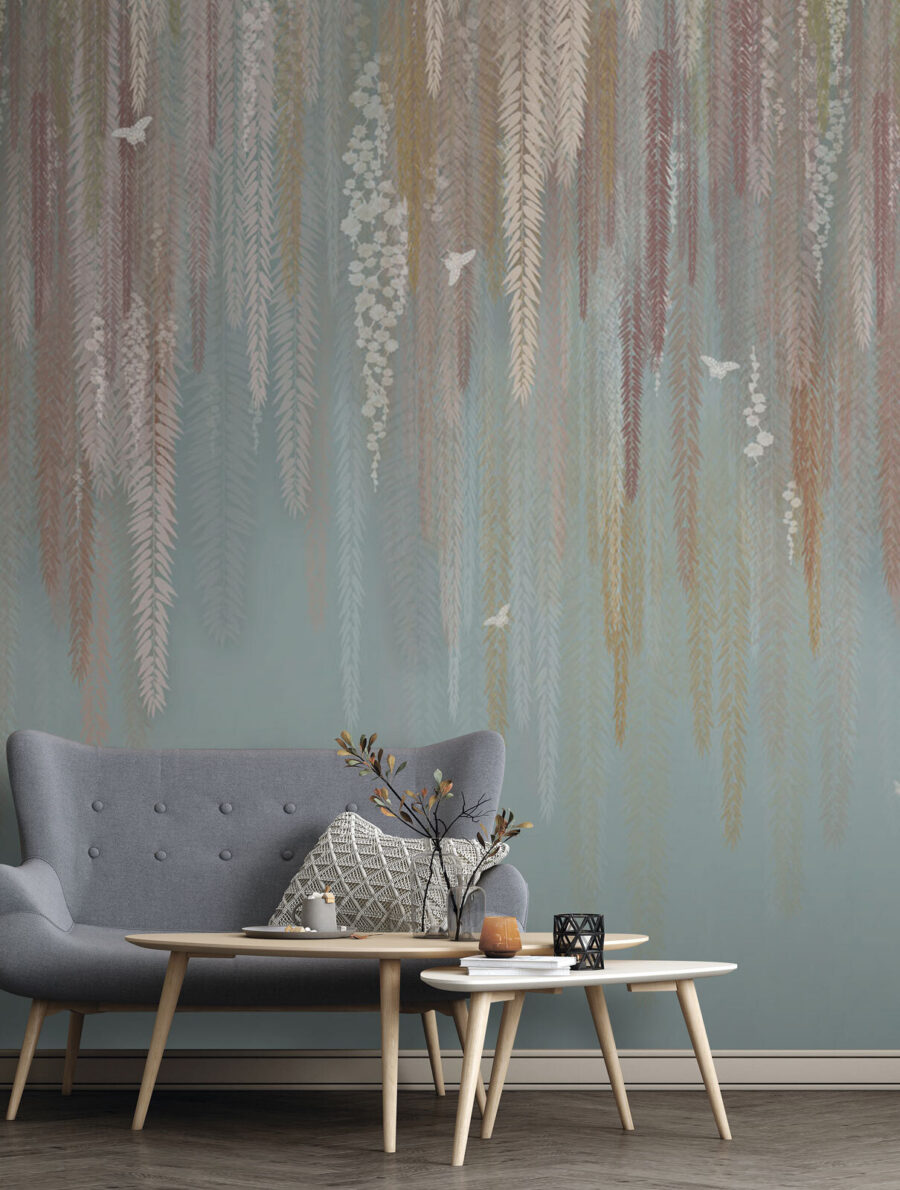 Tato okouzlující nástěnná malba se směsicí květinových a listových vzorů působí téměř jako šepot jara – vyvolává ve vás touhu uvelebit se s knihou a šálkem čaje. Není to jen dekorace, je to zážitek, který vám zvedne náladu.