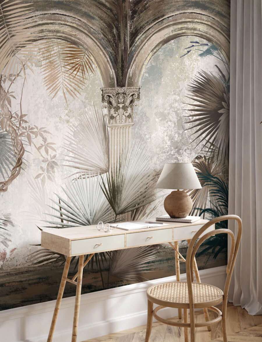 Přemýšleli jste někdy o tom, jaké to je procházet se starověkými ruinami v tropické džungli? Seznamte se s “Nástěnnými malbami Starověké sloupy uprostřed bujné zeleně” – úžasnou směsicí starosvětského šarmu a svěží zeleně. Představte si, že se uvelebíte v místnosti zdobené velkolepými sloupy, které vykukují skrz zelené listí – je to jako mini dovolená, aniž byste museli opustit domov. Tato nástěnná malba, ideální pro každého, kdo má rád exotiku, vnese do každého prostoru útulnou, téměř mystickou atmosféru. Tak si na stěny nasypte trochu historie a přírody – a kdo ví, třeba se budete při každé návštěvě cítit trochu jako Indiana Jones, který objevuje skrytý poklad!