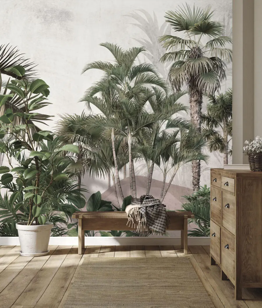 S touto živou nástěnnou malbou tropického ráje proměníte každou místnost v uklidňující oázu. Představte si, že se každý den probouzíte s pohledem na svěží zeleň a pohupující se palmy, zatímco si vychutnáváte ranní kávu. Je to jako mít doma minidovolenou – bez nutnosti balení! Jemné barvy vytvářejí klidnou atmosféru a snadno se kombinují s útulným nábytkem nebo světlými akcenty. Přátelé se možná zatoulají dovnitř, zhluboka se nadechnou a řeknou: “Páni, kde je pláž?”. Dokonalá kulisa pro relaxační večery nebo živá setkání, je úžasné, jak může šplouchnutí přírody prostor oživit a povzbudit.
