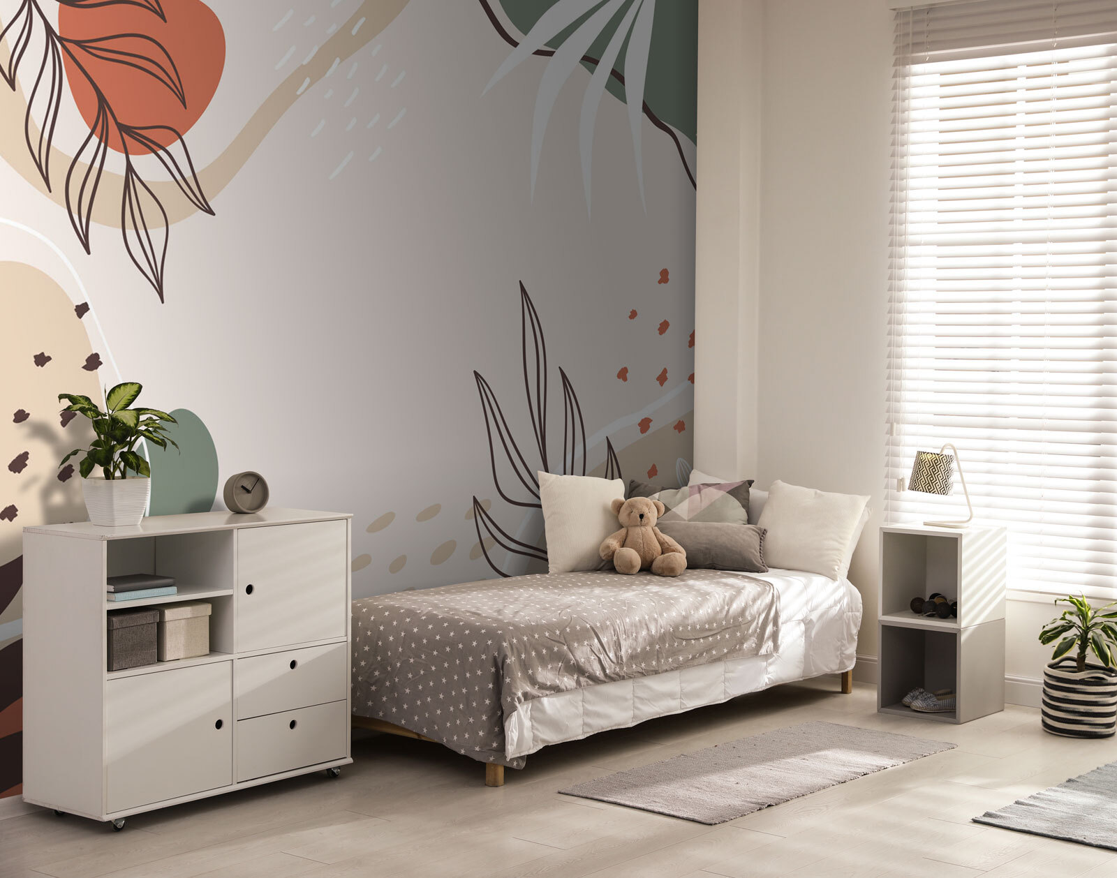 Znáte ten pocit klidu a tvořivosti, který se dostaví při procházce přírodou? Představte si, že byste si ho přenesli na stěny. Přesně to dělá tato nástěnná malba “Abstraktní listy a tvary”. Je to jako závan čerstvého vzduchu, ale v interiéru. Plynulé linie a organické tvary jsou prostě tak uklidňující pro oko – ideální pro přeměnu jakékoliv obyčejné stěny na malou oázu.