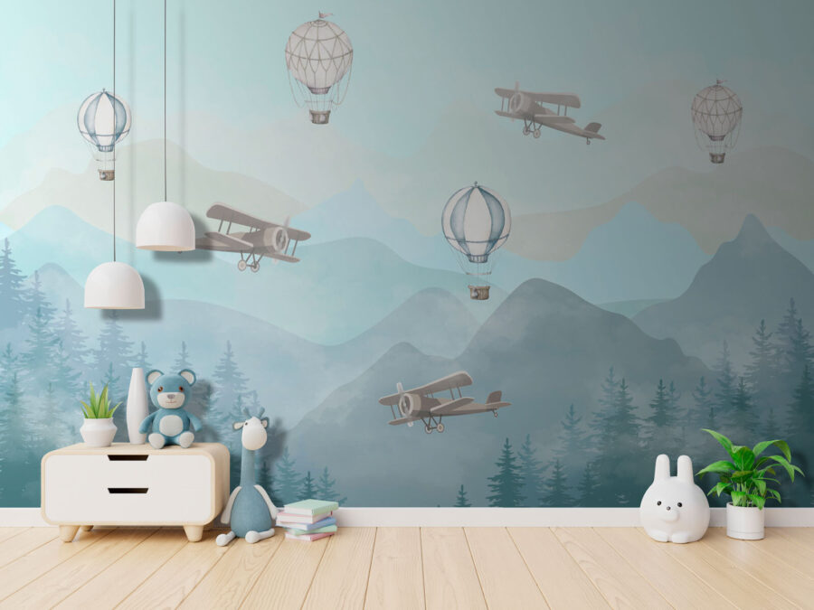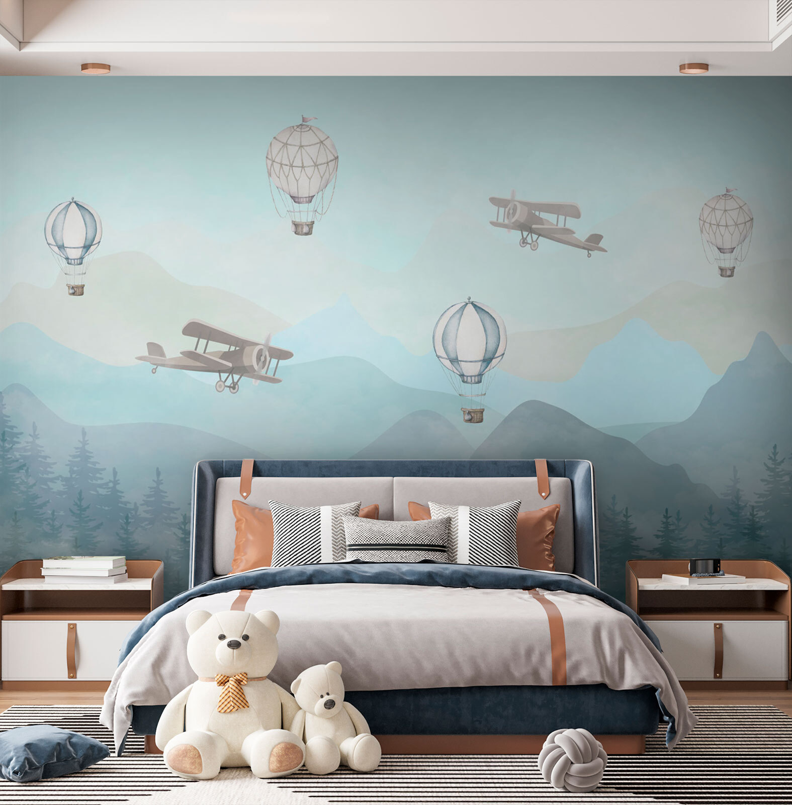 Představte si, že se probouzíte na jemné, zasněné obloze s historickými letadly a okouzlujícími horkovzdušnými balony, které se vznášejí nad mlžnými horami. Tato nástěnná fototapeta “Letadla a balóny nad mlžnými horami” je jako rozmarný výlet do klidné země fantazie. Je ideální do dětského pokoje, dodává mu nádech kouzel a zázraků a denně inspiruje malé dobrodruhy. Představte si uklidňující příběhy před spaním nebo ranní snění. Díky pastelovým odstínům, které jsou příjemné na pohled, se bude každý prostor cítit jako jemný únik do fantazie. Naprosto krásné, co říkáte? Rozkošná směs okouzlení a klidu, připravená vzbudit radost a zvědavost.