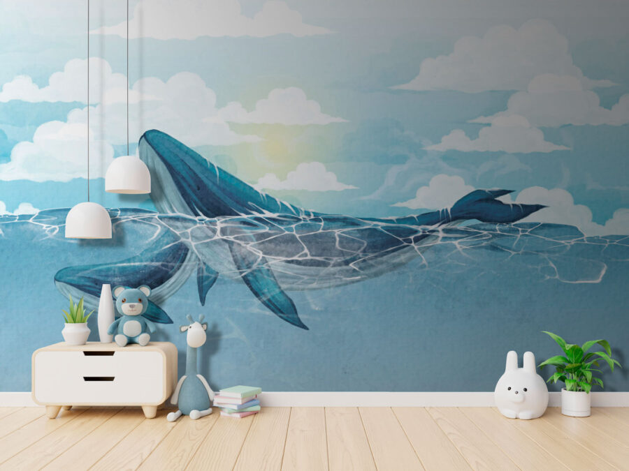 Ponořte se do klidného podmořského světa s touto úchvatnou nástěnnou malbou, která zobrazuje velrybu ladně plující v průzračně modrých vodách. Je to, jako byste měli kousek oceánu přímo ve svém obývacím pokoji! Představte si, jak si pohodlně sedíte s knížkou a kocháte se pohledem na jemného obra, který se vynořuje, aby se nadechl – jak uklidňující to je? Jemný akvarelový styl vnáší do každého prostoru snovou atmosféru. Děti ji budou milovat, a upřímně řečeno, dospělí také! Tato tapeta může proměnit dětský pokoj nebo hernu v vodní dobrodružství, které podnítí fantazii. Věřte nám, je to mnohem zajímavější než počítání oveček!