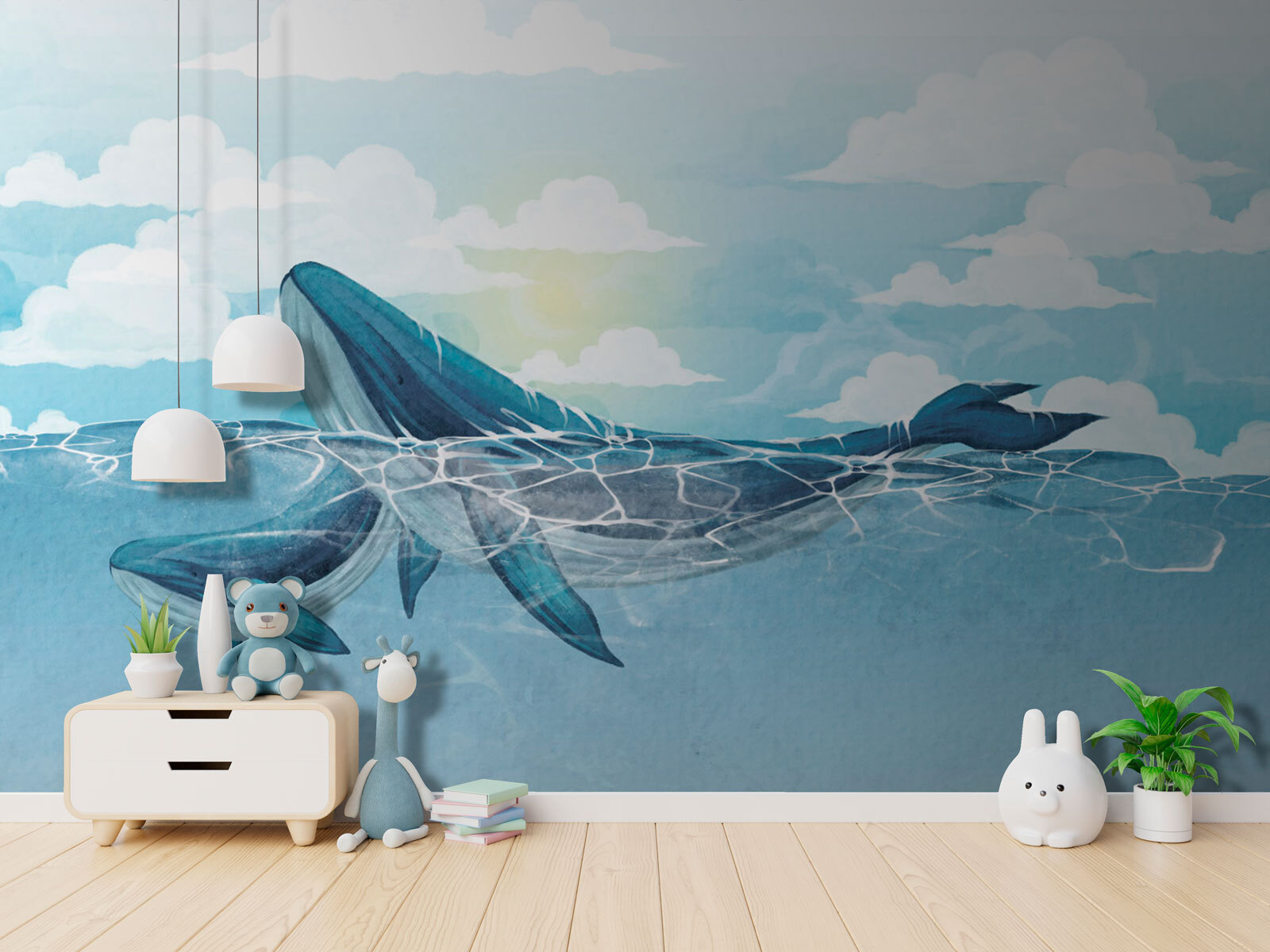 Ponořte se do klidného podmořského světa s touto úchvatnou nástěnnou malbou, která zobrazuje velrybu ladně plující v průzračně modrých vodách. Je to, jako byste měli kousek oceánu přímo ve svém obývacím pokoji! Představte si, jak si pohodlně sedíte s knížkou a kocháte se pohledem na jemného obra, který se vynořuje, aby se nadechl – jak uklidňující to je? Jemný akvarelový styl vnáší do každého prostoru snovou atmosféru. Děti ji budou milovat, a upřímně řečeno, dospělí také! Tato tapeta může proměnit dětský pokoj nebo hernu v vodní dobrodružství, které podnítí fantazii. Věřte nám, je to mnohem zajímavější než počítání oveček!